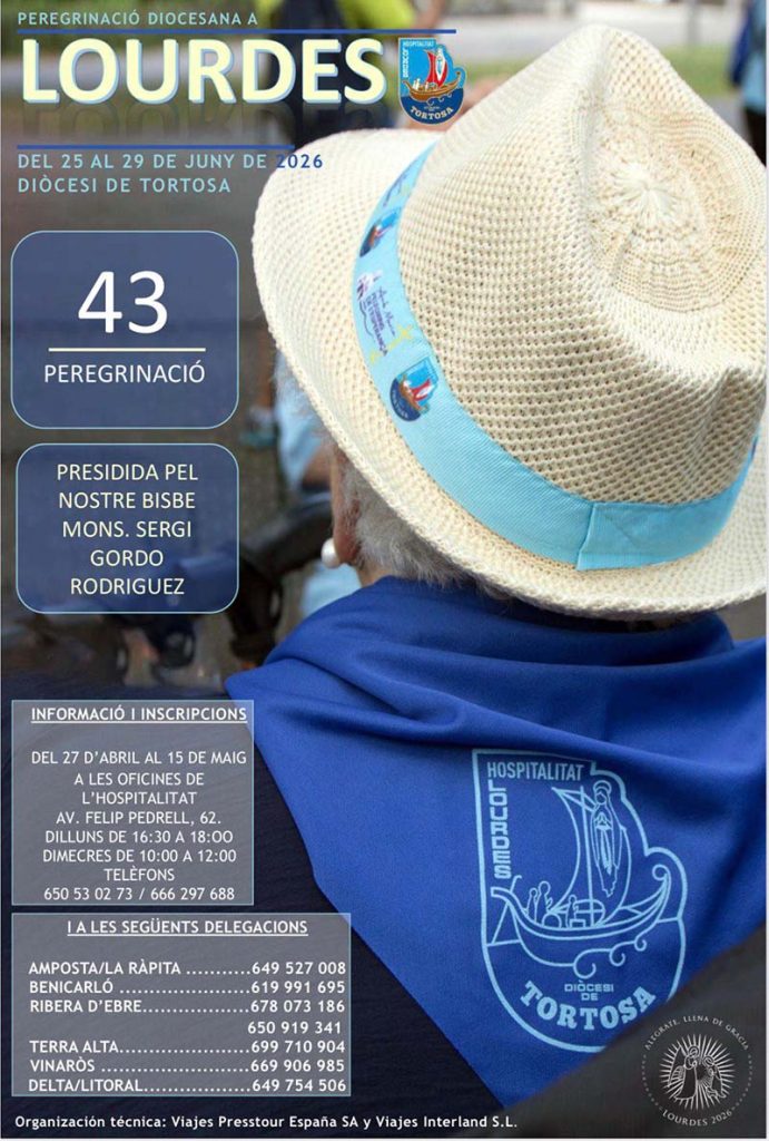 La Junta Local de Setmana Santa de Benicarló informa de la celebració de la Peregrinació Diocesana a Lourdes, que tindrà lloc del 25 al 29 de juny de 2026, organitzada en el marc de la Diòcesi de Tortosa.