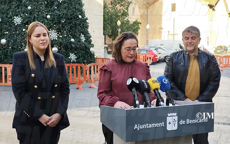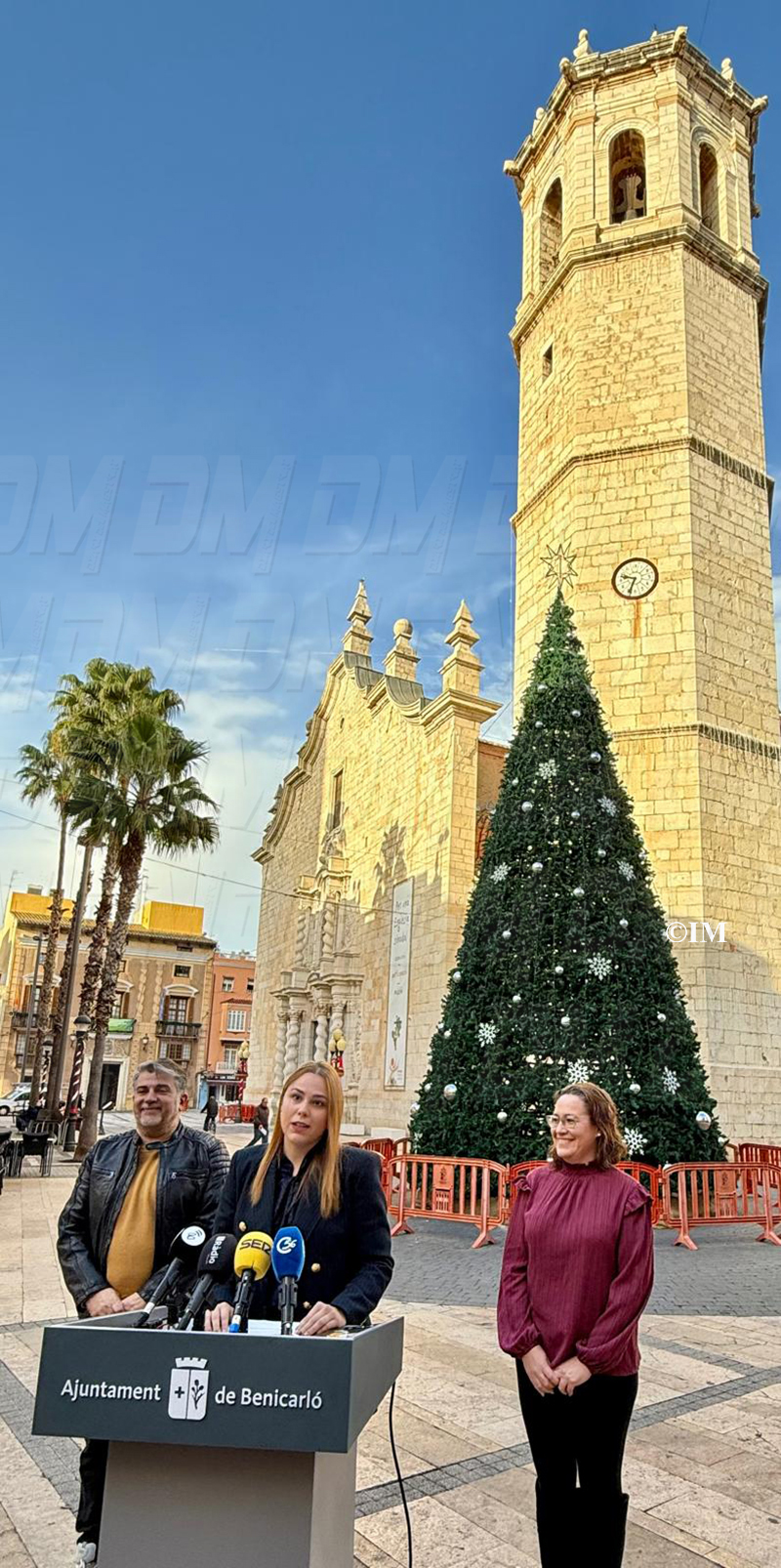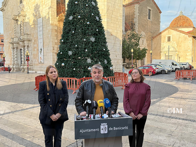 El matí de dilluns 2 de desembre a la plaça de Sant Bartomeu, la regidora de Cultura i presidenta de la Comissió de Festes, Maite Pellicer acompanyada de dos vicepresidents també de la comissió. Han presentat el programa d’actes de Nadal a Benicarló 2024/2025.
