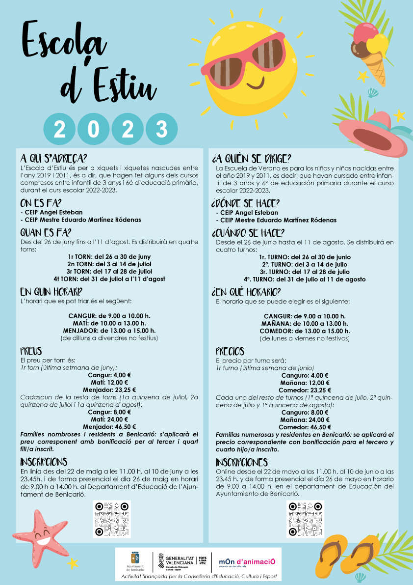 Les inscripcions es poden realitzar a partir del 22 de maig a les 11.00 hores a través del codi QR que apareix en els cartells. També s’ha reservat el dia 26 de maig per a fer inscripcions presencials directament a l’Àrea d’Educació de l’Ajuntament.