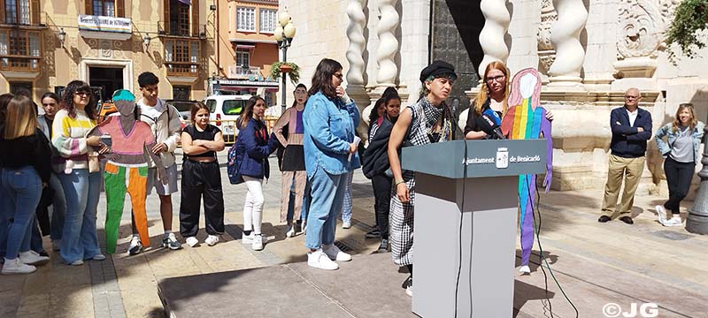 En l’acte també ha participat l’alumnat de l’IES Joan Coromines i de l’IES Ramón Cid, que han llegit manifestos molt reivindicatius que han posat de relleu la dura realitat que viuen avui dia els joves amb diferents orientacions sexuals o identitats de gènere.