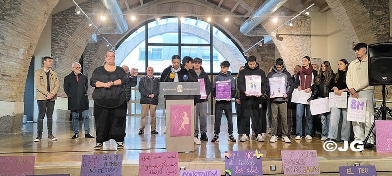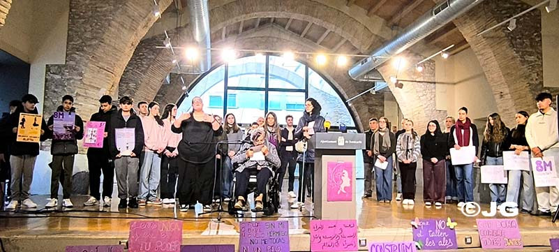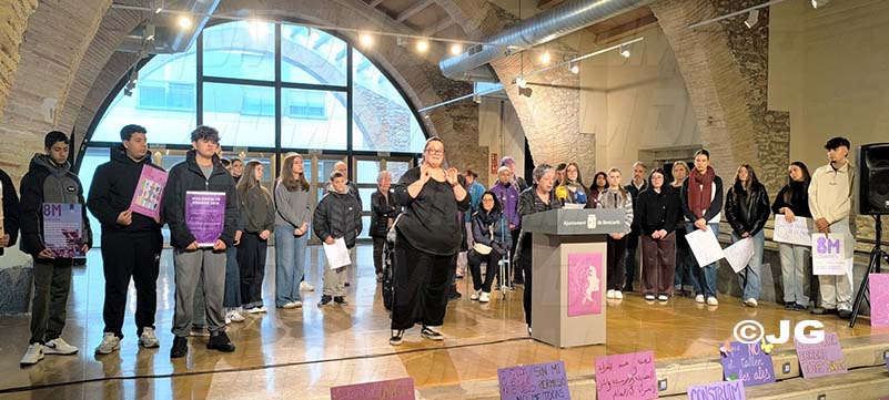 L’alumnat de l’IES Joan Coromines, l’IES Ramón Cid i del Col·legi La Salle ha fet una crida per a l’eliminació de prejudicis sexistes i per l’educació en la igualtat i el respecte, i han exemplificat algunes de les situacions sexistes que ocorren diàriament.