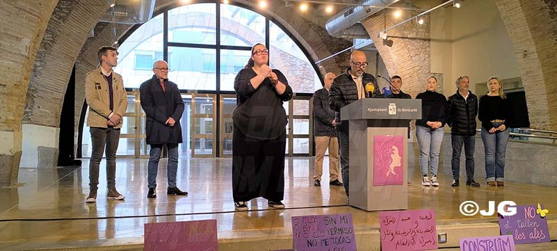 La commemoració del Dia de la Dona a Benicarló s’ha celebrat avui divendres, dia 6, i ha reunit representants institucionals, de la comunitat educativa i de les associacions benicarlandes per a reivindicar la igualtat dels drets laborals i socials entre dones i homes. La lectura del manifest institucional ha anat a càrrec de l’alcalde, Juanma Cerdá, el regidor de Serveis Socials i Polítiques Inclusives, Carlos Delshorts, i representants dels grups municipals del PSPV-PSOE (Mireia Mancheño), Compromís (Jordi Maura) i Benigazlum (Enrique Besalduch).