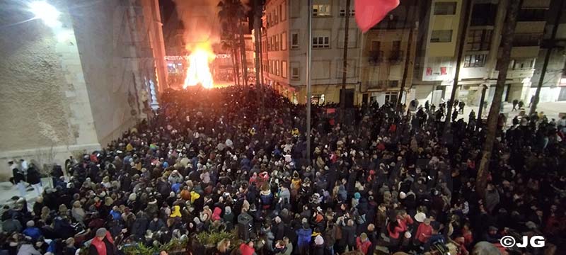 La vesprada de dissabte 20 de gener, a la plaça Sant Bartomeu del municipi de Benicarló, s’ha dut a terme la segona part de la festivitat de Sant Antoni. Amb la crema definitiva del dimoni i l’unica cavalcada de tirada de coques i lectura de lloes.