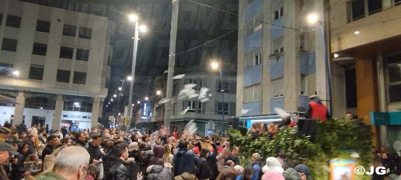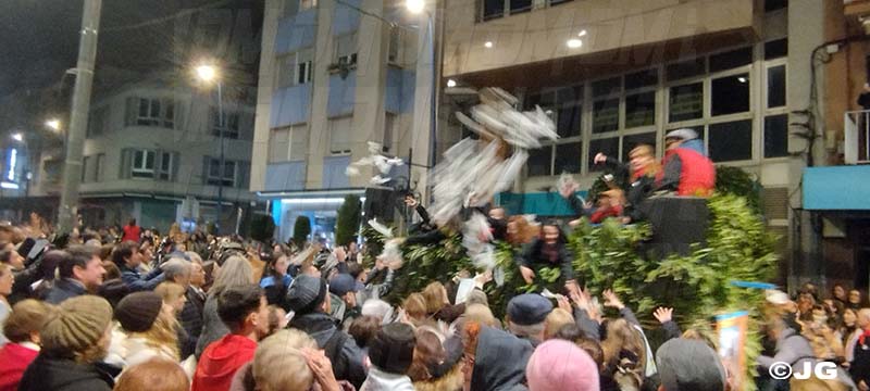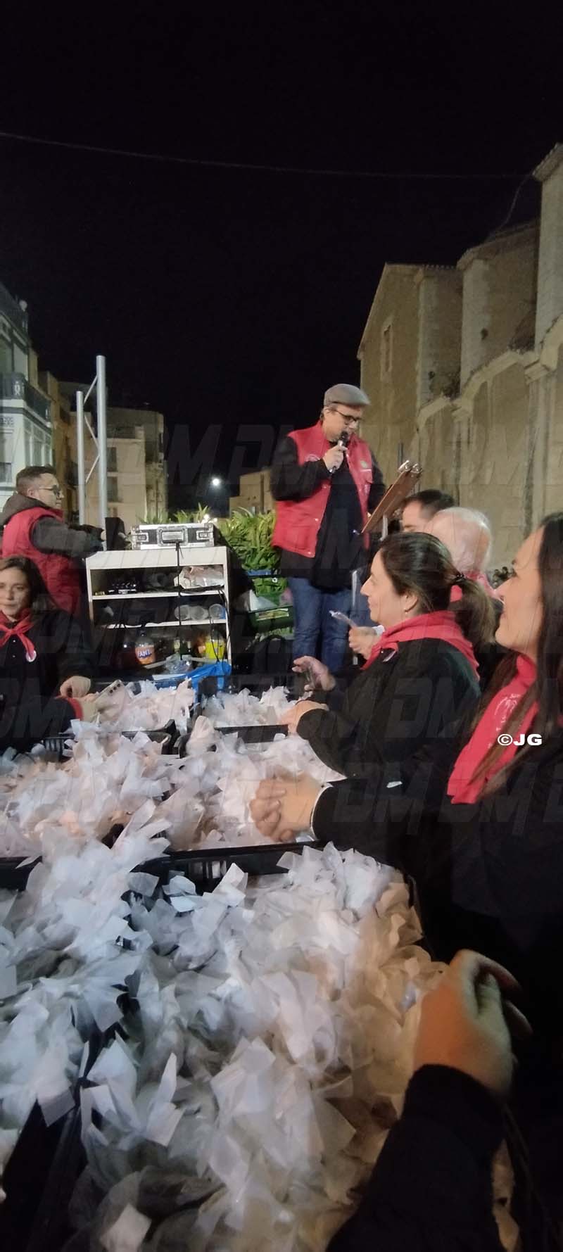 Les primeres lloes, no han pogut obviar problematiques actuals del municipi, el bulevard, l’eix civil o el tancament de la piscina. Tampoc han pogut faltar les critiques politiques. Finalment han realitzat el llançament massiu de coques elaborades per la confraria.