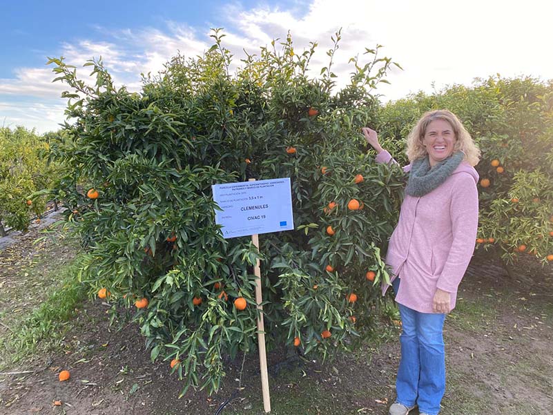 La innovación en patrones y variedades para una citricultura más eficiente y sostenible es el tema del programa más destacado por la técnica de cítricos del área de ingeniera de Benihort, Montse Segarra Melià, quien valora “el nuevo modelo de producción, llamado en seto de alta densidad, consistente en patrones enanizantes tipo CIVAC-19 que reducen el tamaño de la copa del árbol y aumentarían su productividad. Con este patrón se estiman producciones altas de 40 a 50.000 kilos por hectárea sin afectar a la calidad ni al tamaño de la fruta. Además, con este modelo también se reducirían costes porque se conseguiría disminuir el uso de fitosanitarios, el consumo de agua de riego y los trabajos de poda también serían menores”.