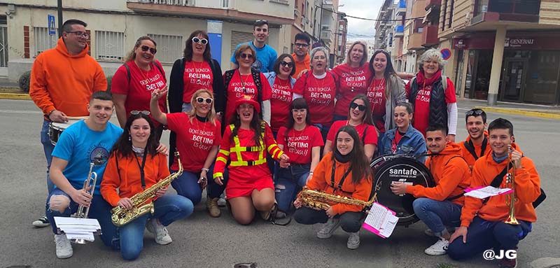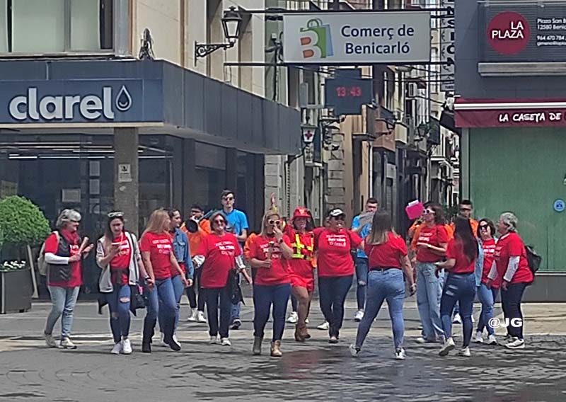 La pluja del migdia del dissabte 23 d’abril no va ser cap obstacle ni impediment per festejar el comiat de soltera de Bettina Pepiol Dorizon, pels carrers de Benicarló, acompanyats tots ells per la xaranga de Peníscola “All i Pebre”.