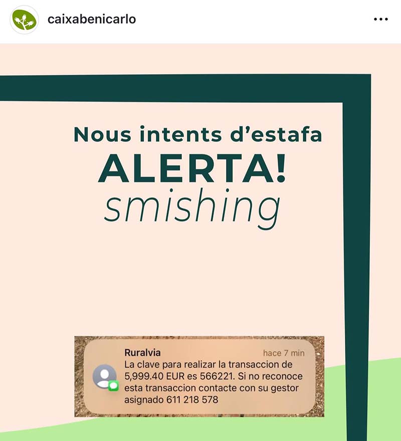 Revisar sempre l’emissor i, en cas de dubte, contactar directament amb Caixa Benicarló.
