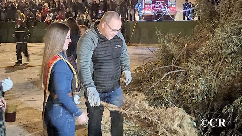 Mitja hora més tard, a les 20:00 h de la vesprada, s’ha produït la cremada de la foguera per part de la dama de la Caixa Vinaròs i reina de la Cort d’Honor de la Fira i Festes de Sant Joan i Sant Pere, Laia Albalat.