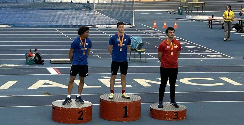 Miguel Collado Villar va obtindre la medalla de bronze en el llançament de pes (5kgs) amb una marca de 11.24m.