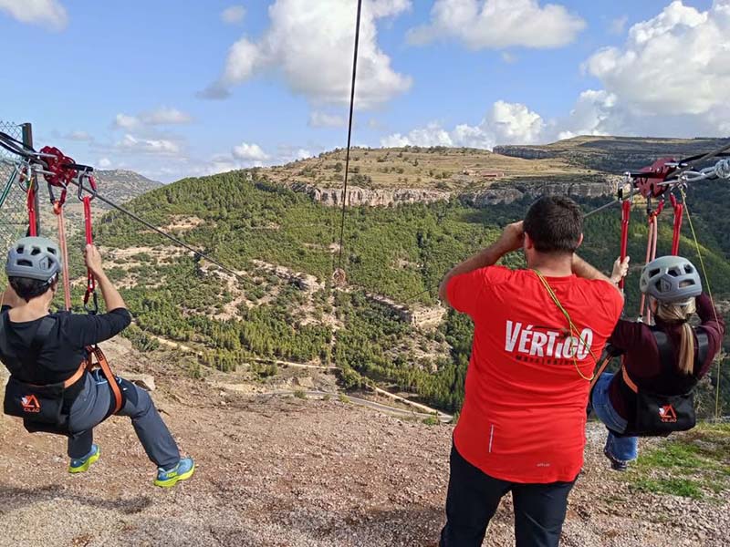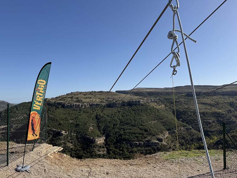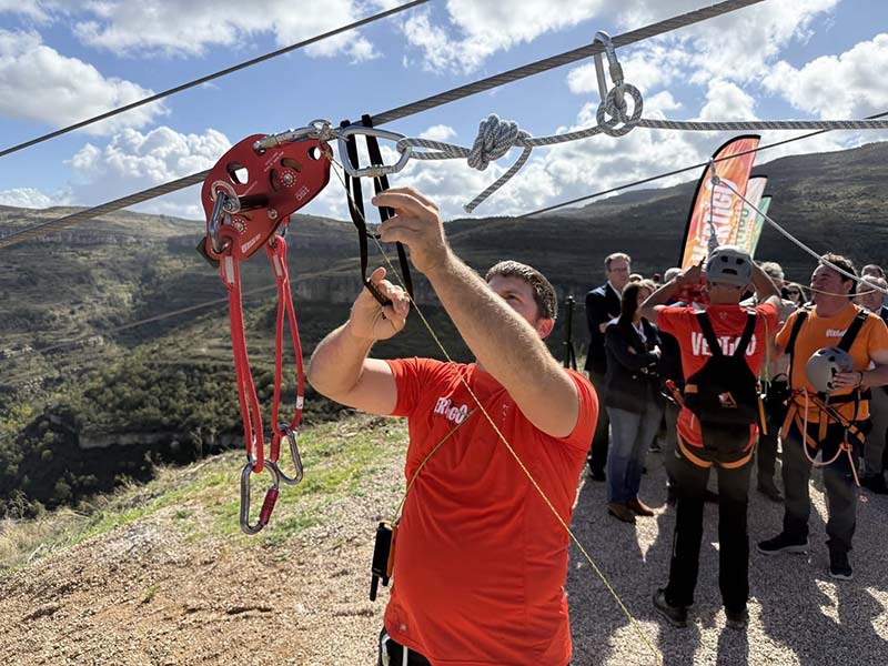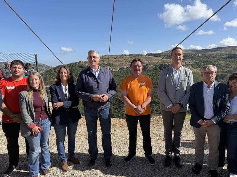 El municipi de Cantavieja ha fet un pas endavant en la seua estratègia de desenvolupament turístic amb la inauguració de la tirolina doble Vértigo Maestrazgo, una de les més llargues d’Aragó, que compta amb gairebé un quilòmetre de recorregut i un desnivell de 330 metres.