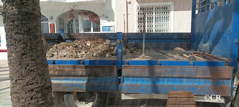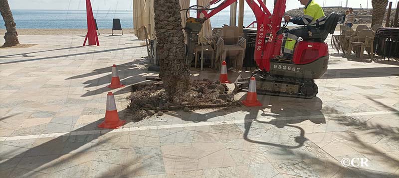 Durant el matí d’avui, membres de la Brigada Municipal han començat a retirar les fustes de les palmeres del Passeig Marítim de la ciutat de Vinaròs, concretament de la zona del Passeig Blasco Ibañez.