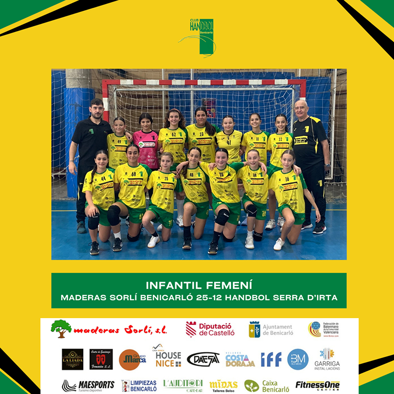 • L’INFANTIL FEMENÍ es va imposar a l’Handbol Serra d’Irta per un contundent 25 a 12. Una victòria més per a les nostres xiques.
