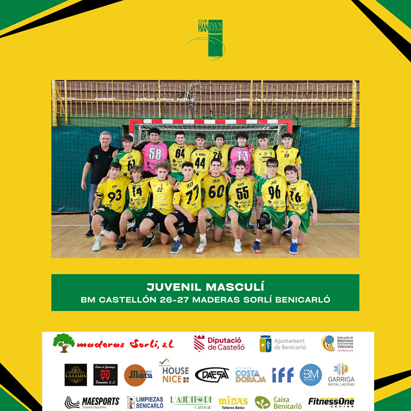 • El JUVENIL MASCULÍ es va desplaçar fins a Castelló i va guanyar per un ajustat 26 a 27 al Balonmano Castellón.
