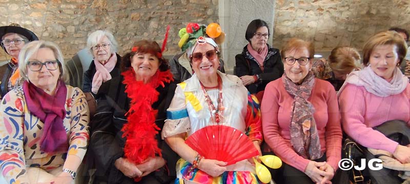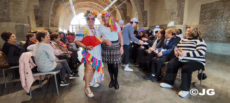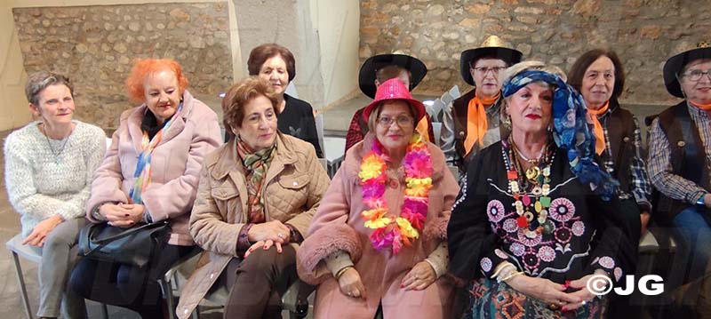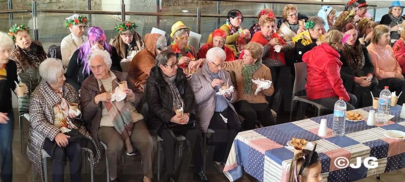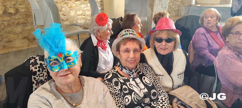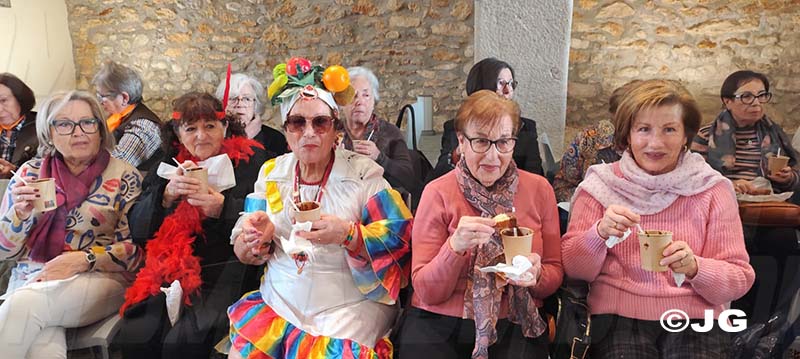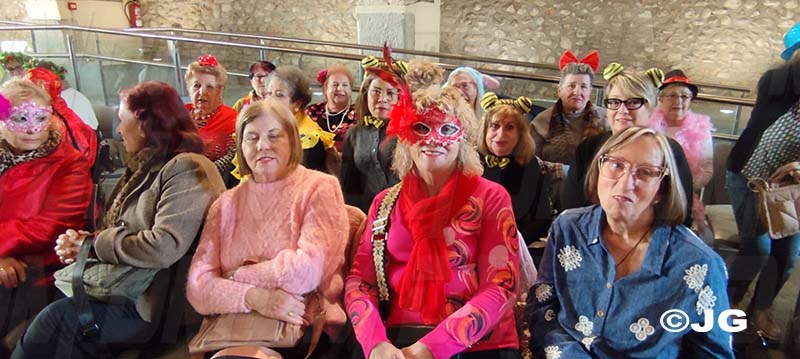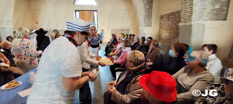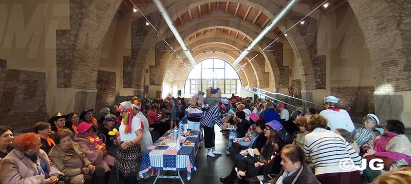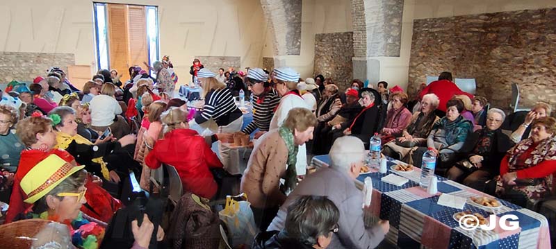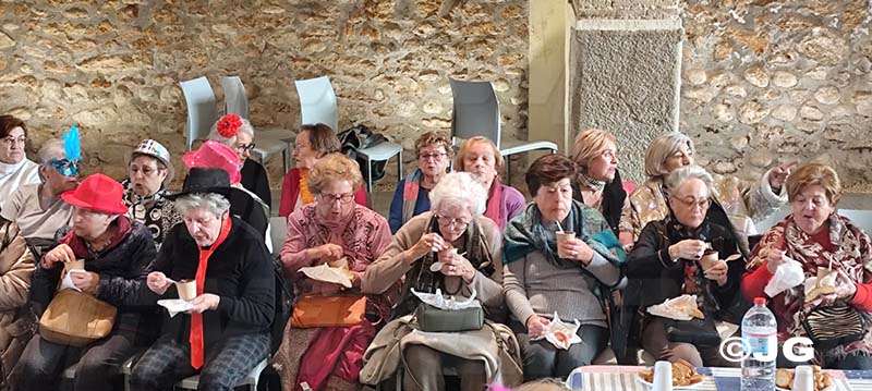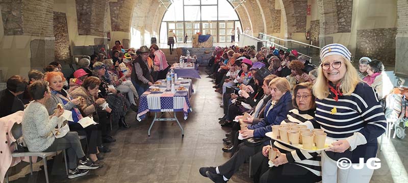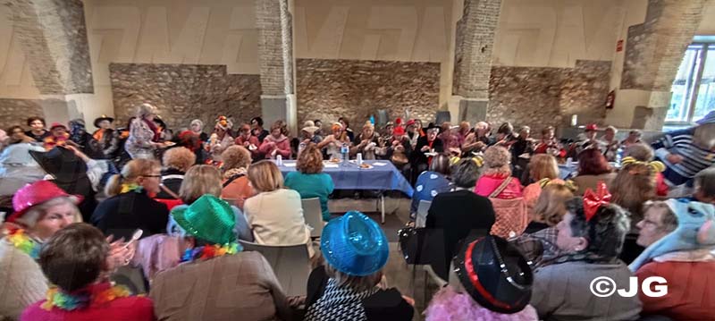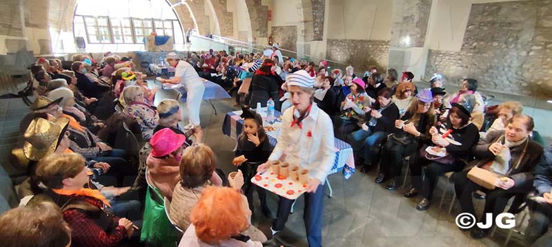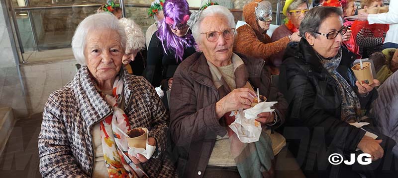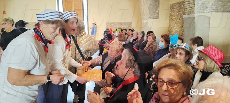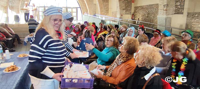Chocolate, ensaimadas y pan tostado para merendar y baile para todas las socias allí presente en una tarde de Carnavalera.