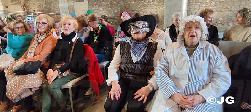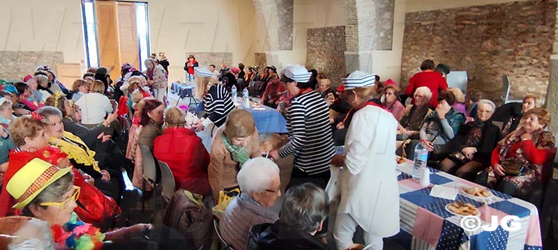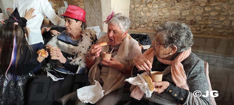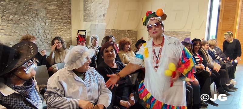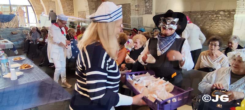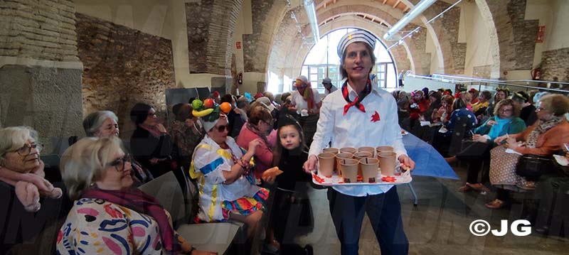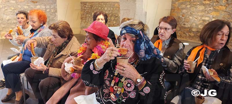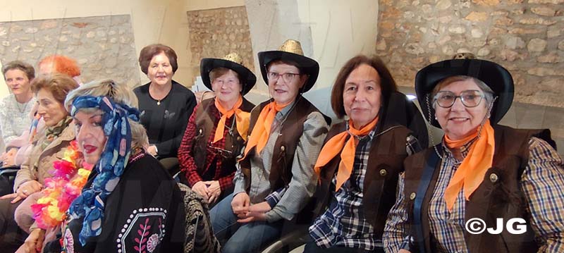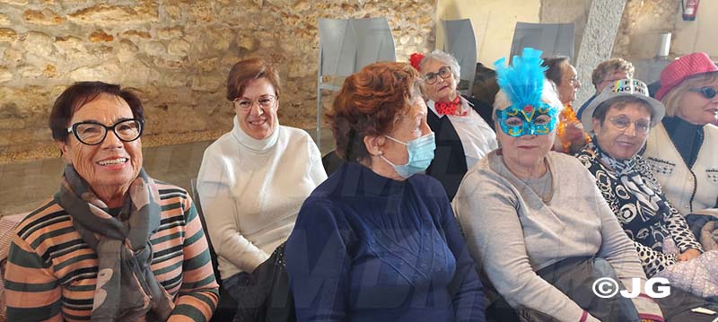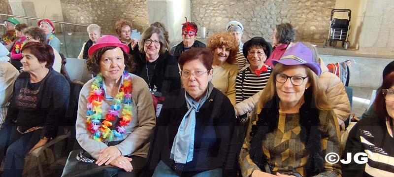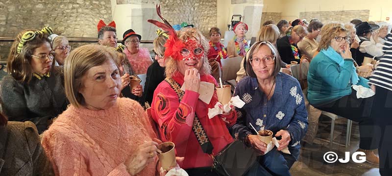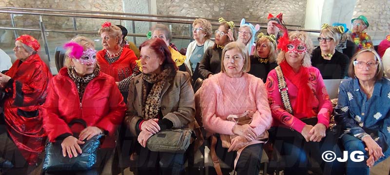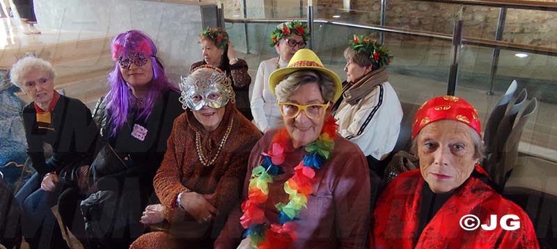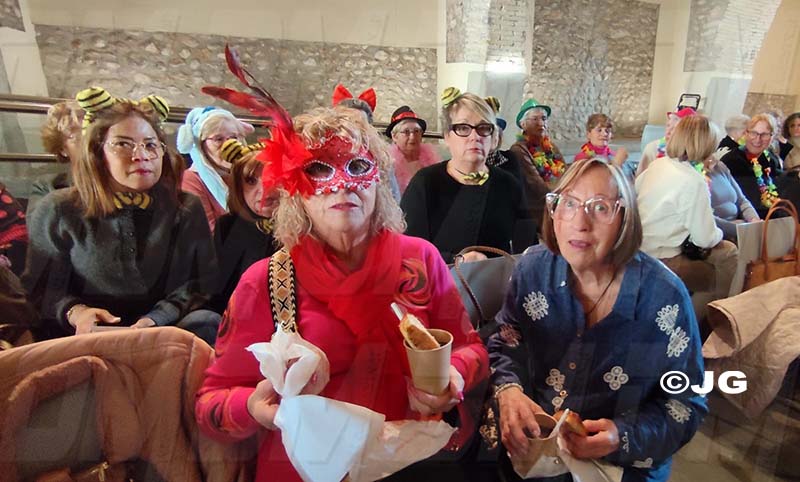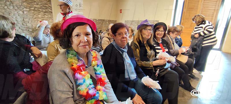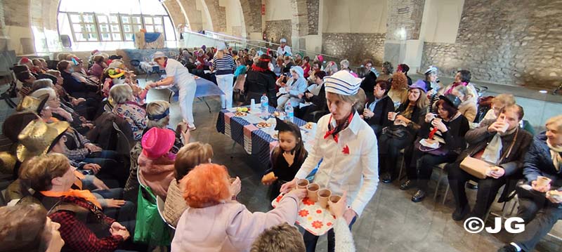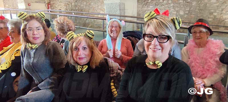 Chocolate, ensaimadas y pan tostado para merendar y baile para todas las socias allí presente en una tarde de Carnavalera.