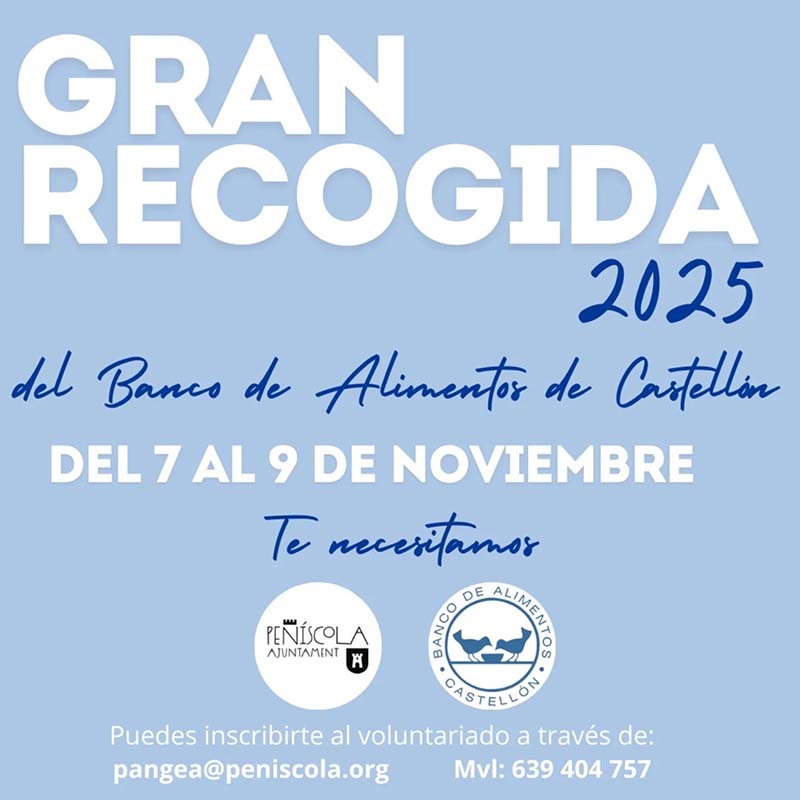 L’Ajuntament de Peníscola col·labora amb el Banc d’Aliments de Castelló en la Gran Recollida 2025 – Del 7 al 9 de novembre