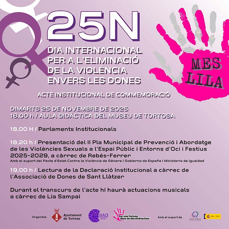 Tortosa presentarà el II Pla de Prevenció de Violències Sexuals en l’Oci Nocturn durant l’acte del 25N