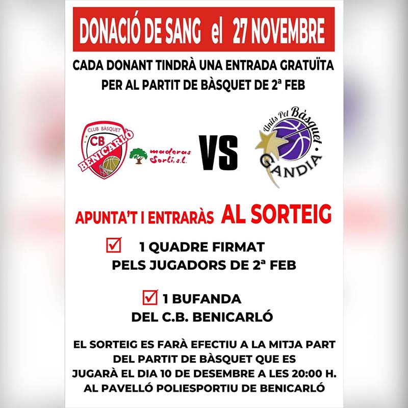 Jornada solidària de donació de sang amb entrada gratuïta per al partit del 10 de desembre