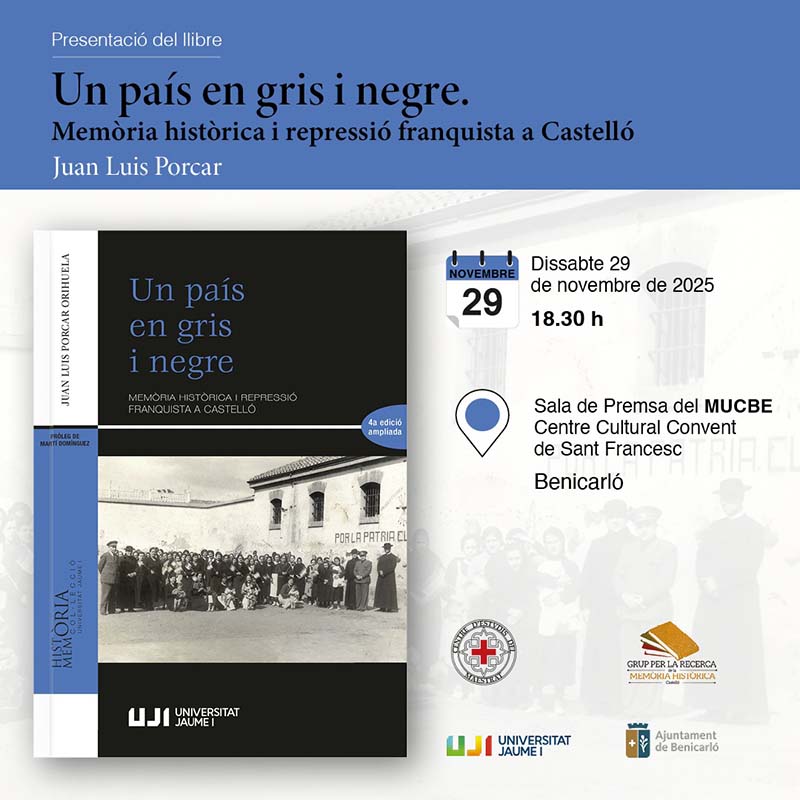 El Centre d’Estudis del Maestrat porta al MUCBE (Benicarló) la presentació de la 4a edició de “Un país en gris i negre”, amb noves dades sobre el Baix Maestrat