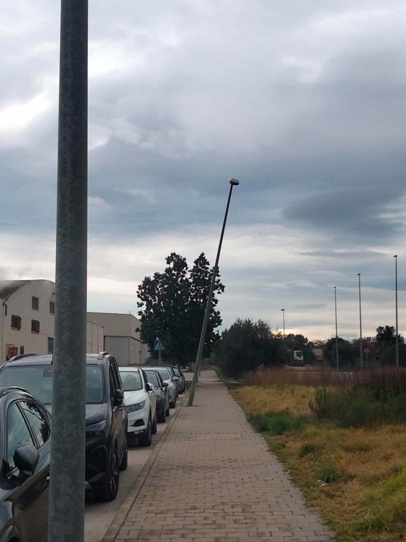 Una farola en perill de caure alarma els veïns al carrer Sant Telm de Benicarló