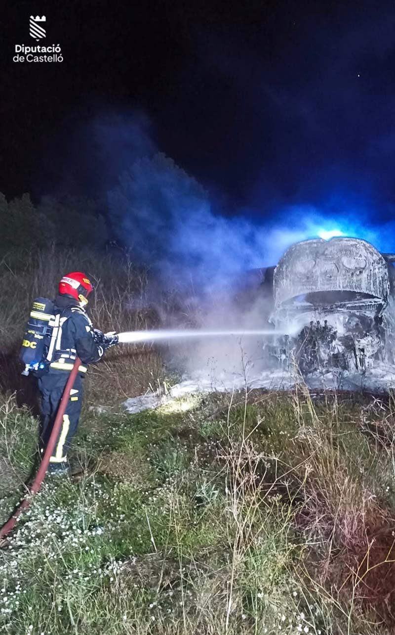 Un vehicle s’incendia a l’AP-7 a Alcalà de Xivert després d’un xoc amb un porc senglar