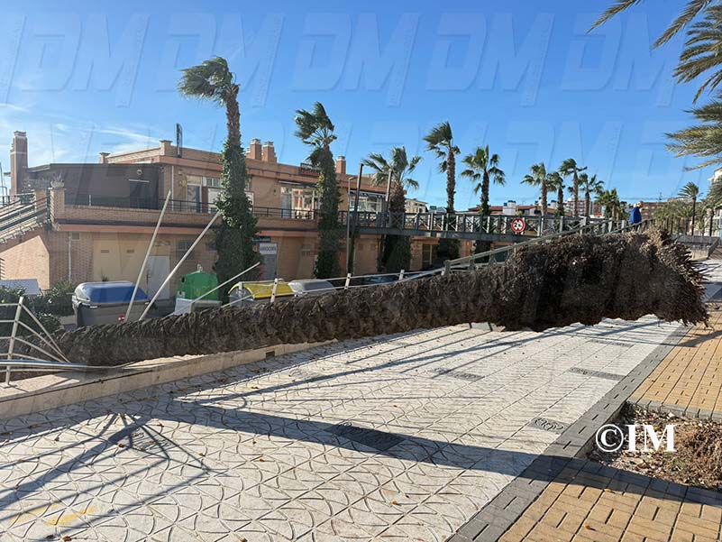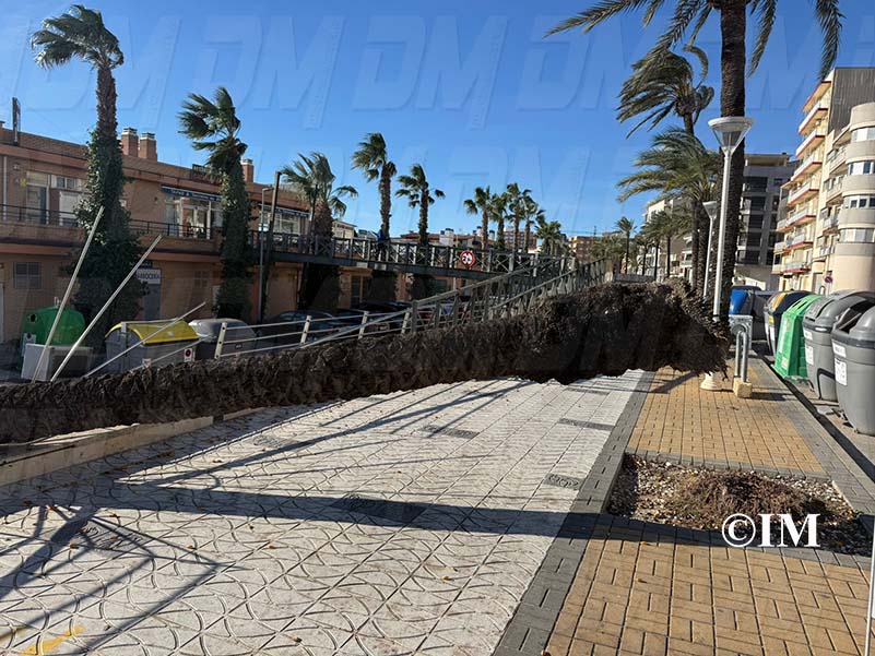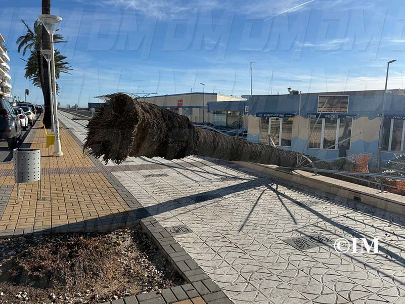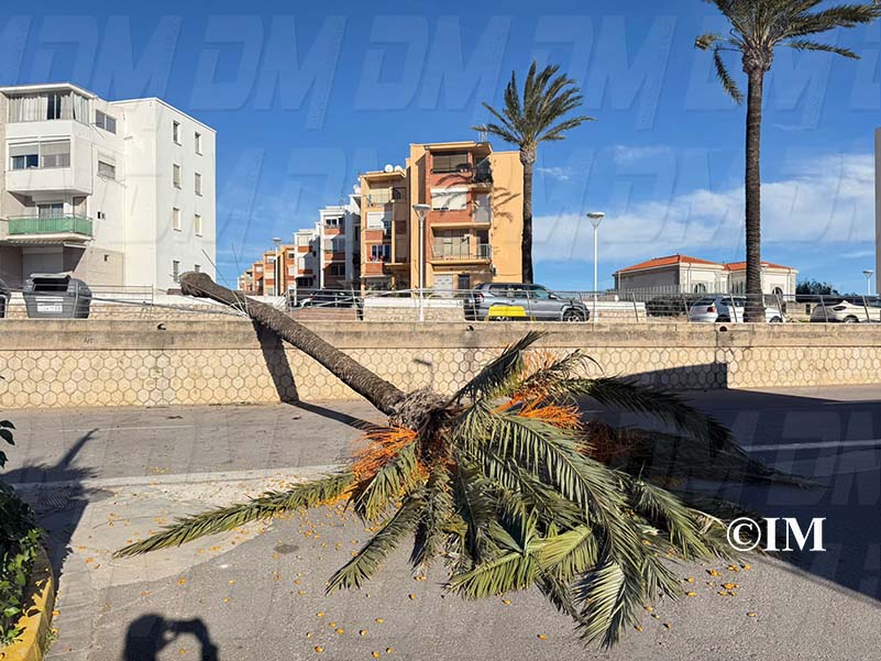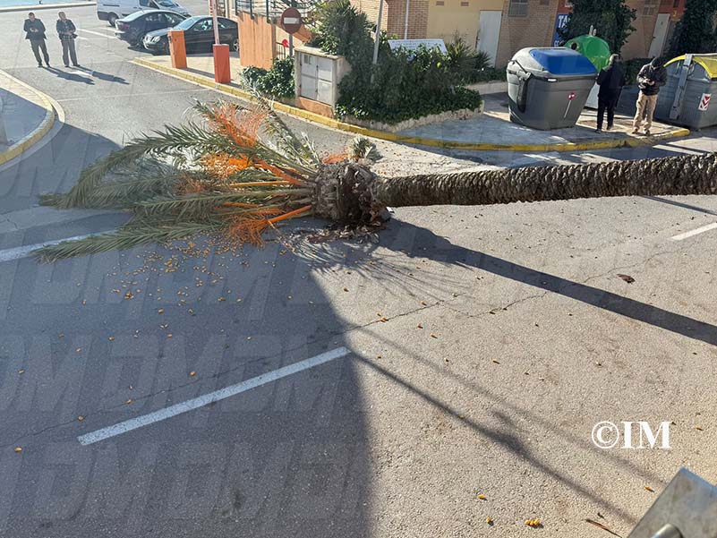 Una palmera ha caigut aquest matí de dissabte, 14 de febrer, a l’avinguda Marquès de Benicarló a conseqüència dels forts vents registrats a la localitat.