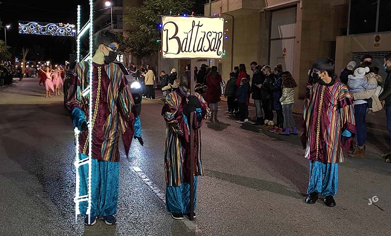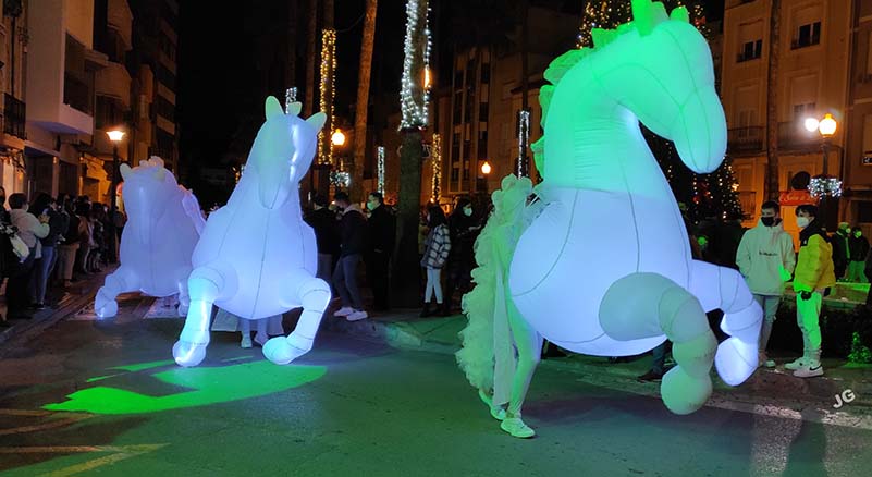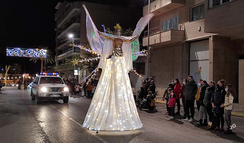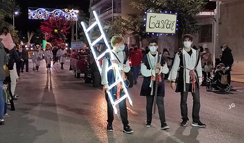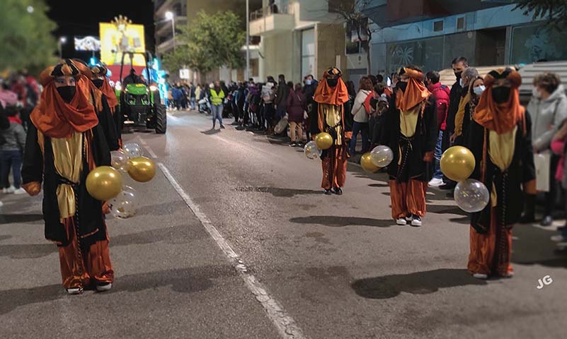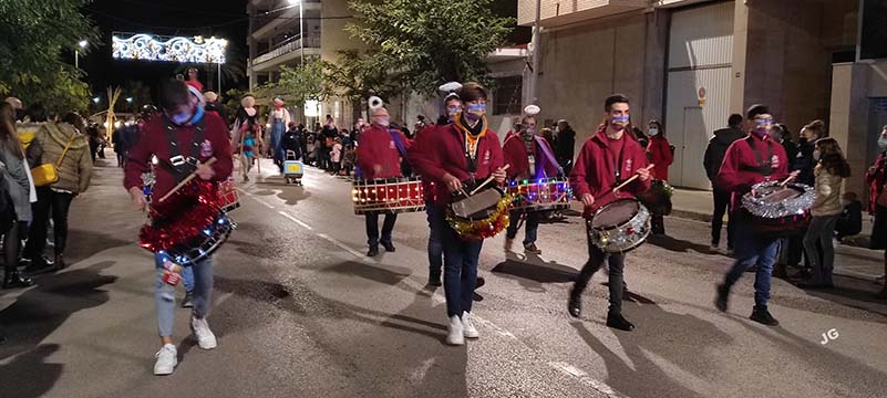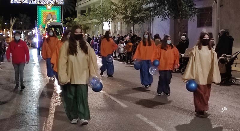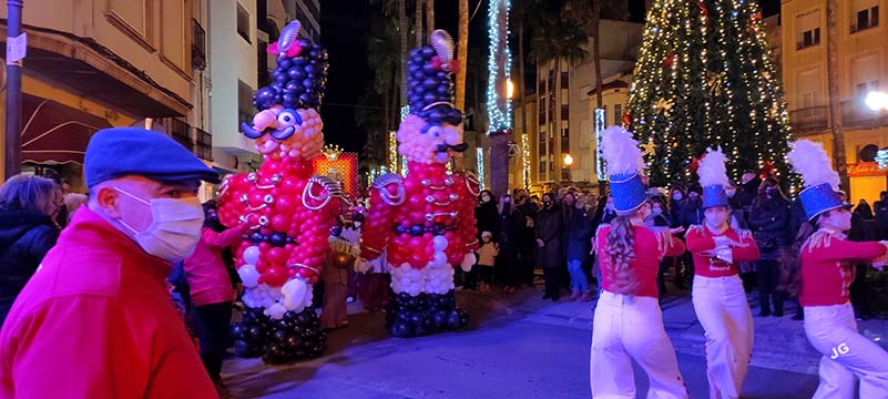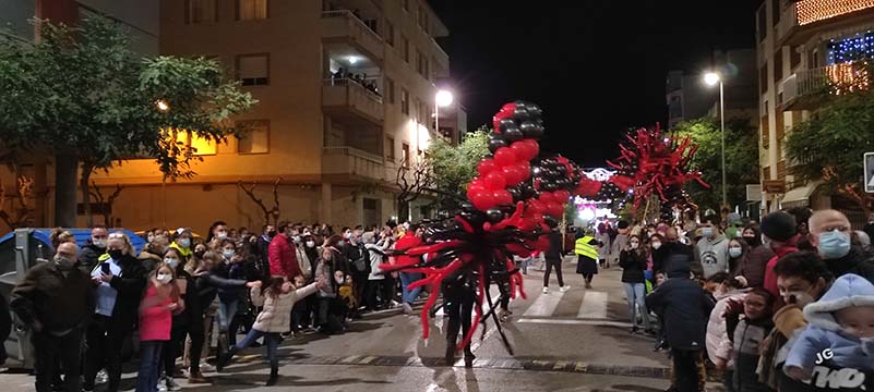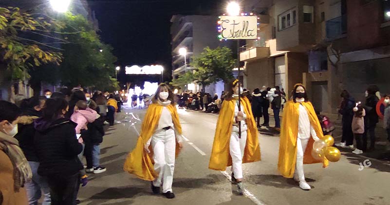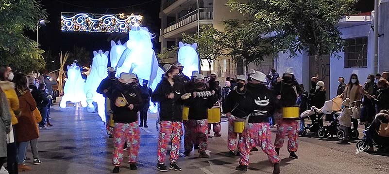 Seguidament es va iniciar la Cavalcada de Sa Majestats els Reis d’Orient, la Colla de Gegants i Cabuts de Benicarló, el Grup de Bombos i Tabals dels Antics Alumnes de la Salle, Guzmán Artes Escèniques, Mabel, Pelina i diversos grups d’animació van recorrer diferents carrers de la ciutat fins a arribar a l’Ajuntament.
