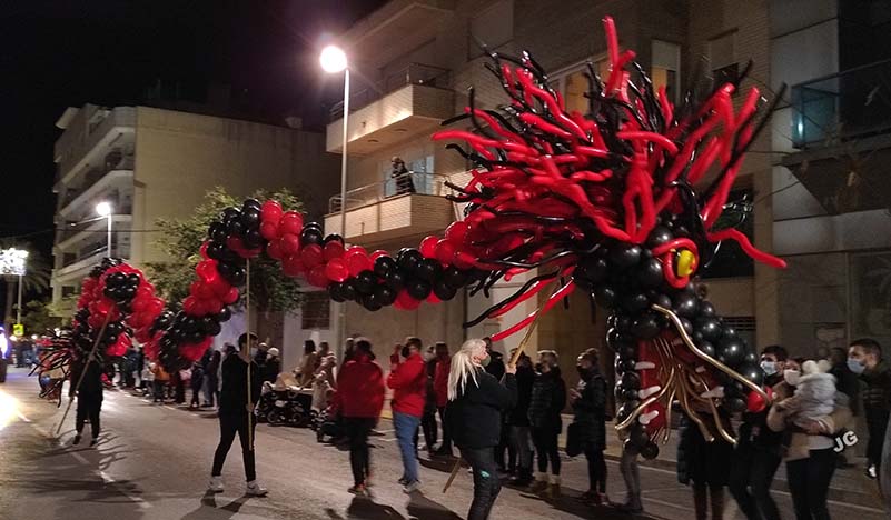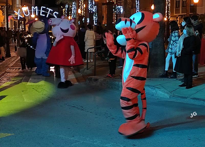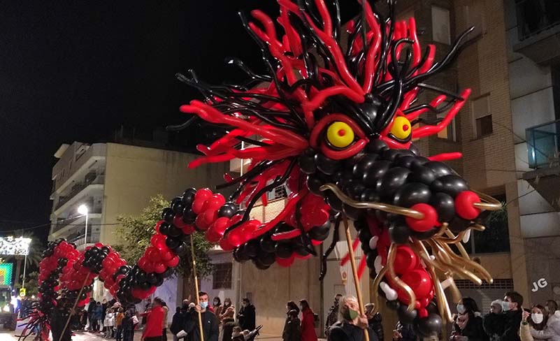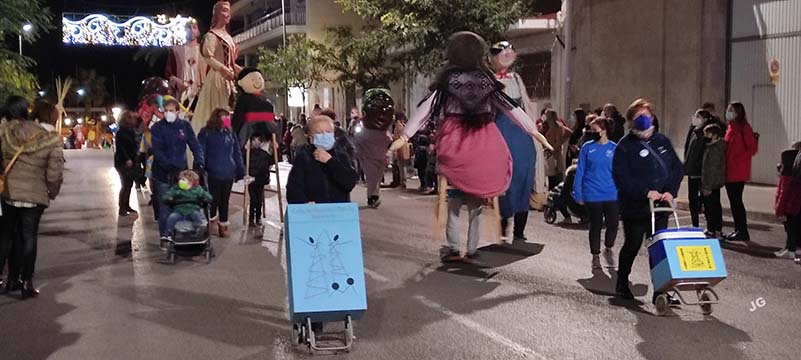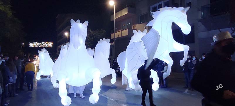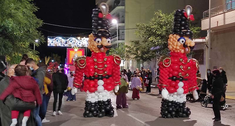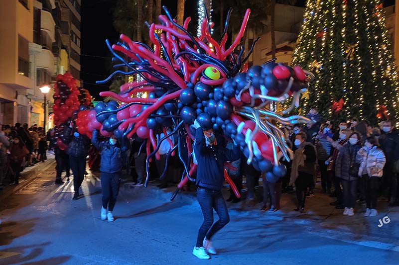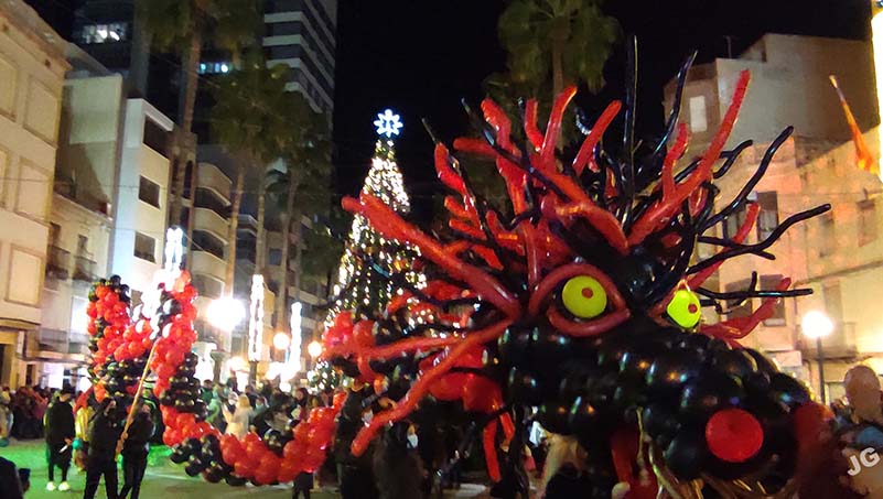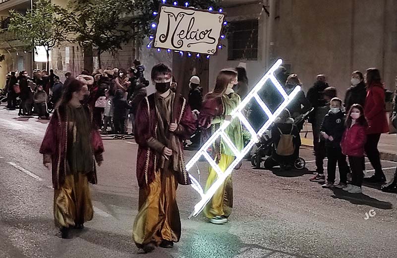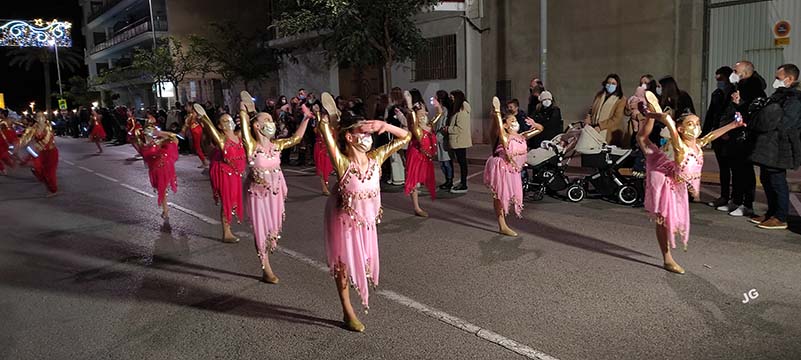 Seguidament es va iniciar la Cavalcada de Sa Majestats els Reis d’Orient, la Colla de Gegants i Cabuts de Benicarló, el Grup de Bombos i Tabals dels Antics Alumnes de la Salle, Guzmán Artes Escèniques, Mabel, Pelina i diversos grups d’animació van recorrer diferents carrers de la ciutat fins a arribar a l’Ajuntament.