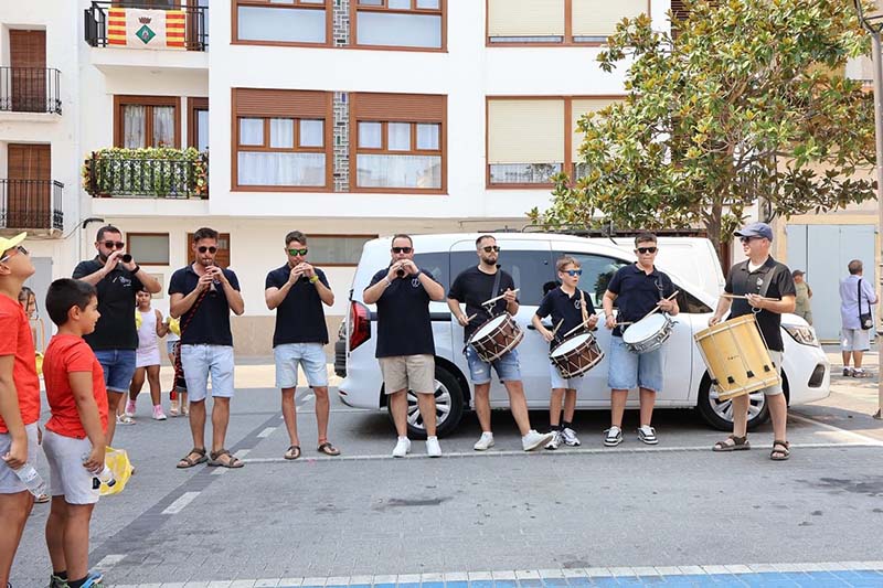 A continuació des de la plaça Major, les Campanes al vol i els coets, juntament amb la música de Gaita i Tabal de Joventuts Unides, van anunciar l’inici de les Festes.