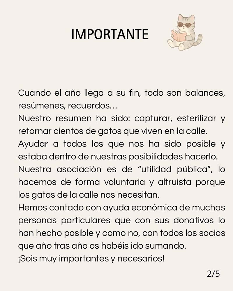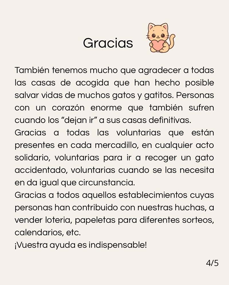 Nuestra asociación es de utilidad pública y todo el trabajo que realizamos es voluntario y altruista, porque los gatos de la calle nos necesitan.