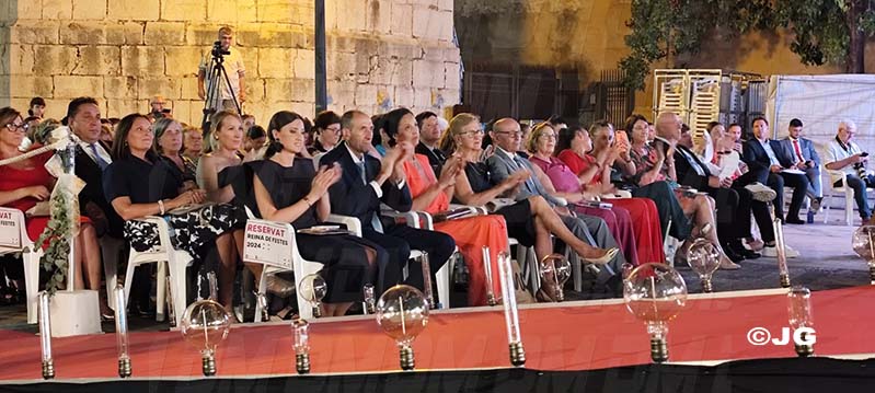 A la plaça Sant Bartomeu, a les 22:00 hores, va començar la proclamació de Claudia Artigas com a reina de les festes patronals 2024, que va rebre el relleu de Neleta Boo reina de les festes patronals 2023.