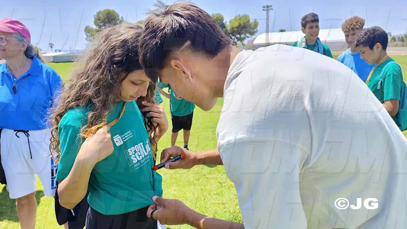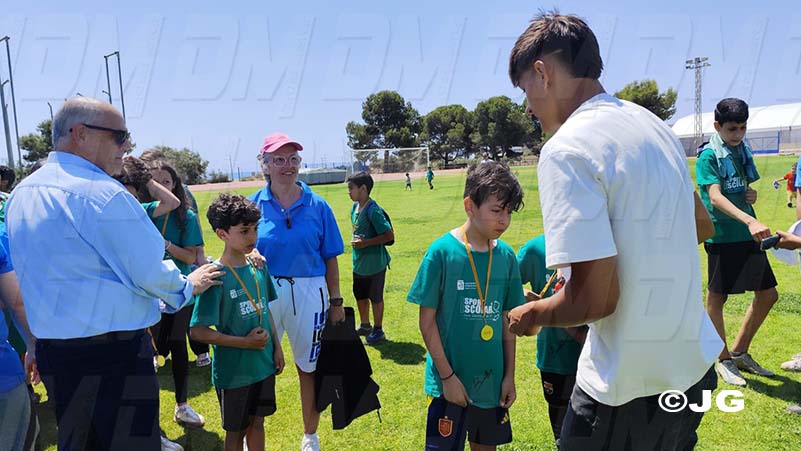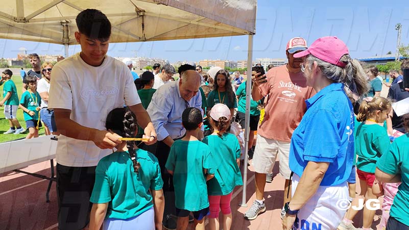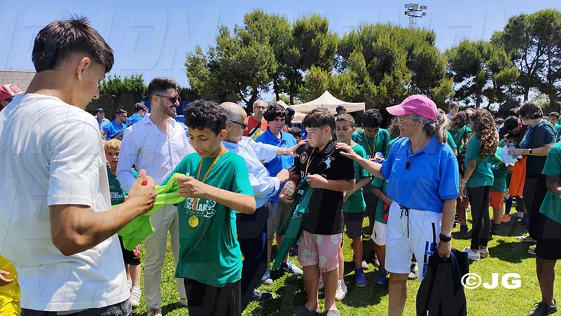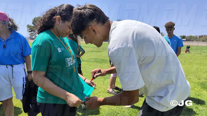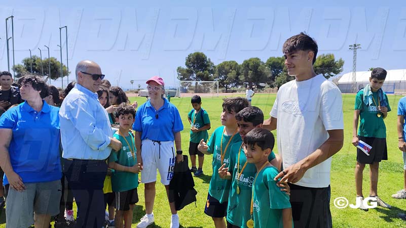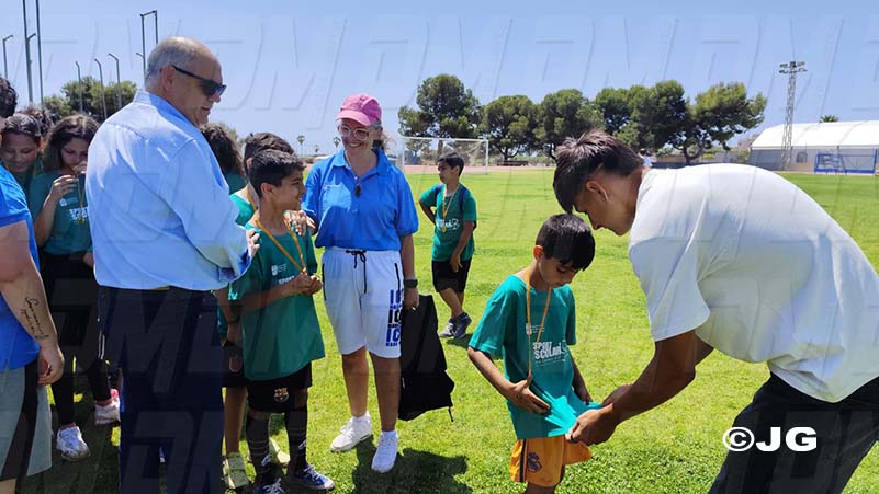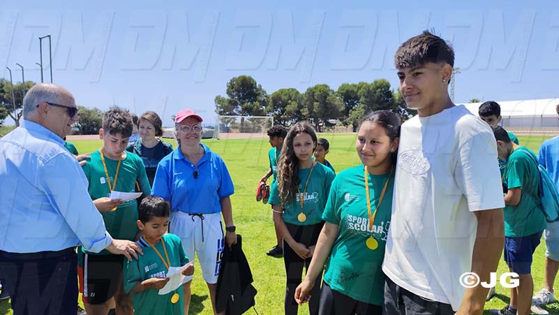 Han acompanyat a l’alcalde de la Ciutat, Juanma Cerdà, el regidor d’Educació, Carlos Delshorts i el futbolista del juvenil del F.C Barcelona, Brian Fariñas, que els ha acompanyat amb la seua presència i seguidament ha signat autògrafs en la samarretes, a totes i tots els alumnes.