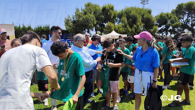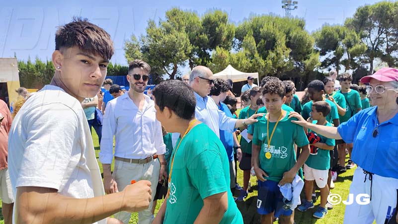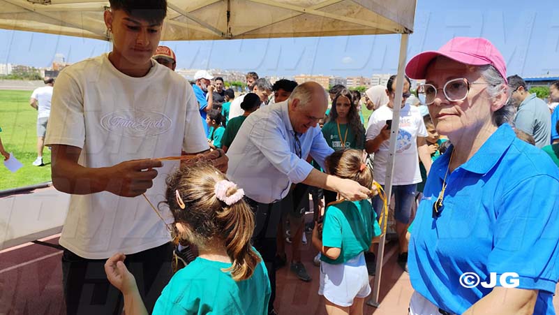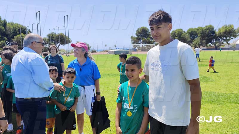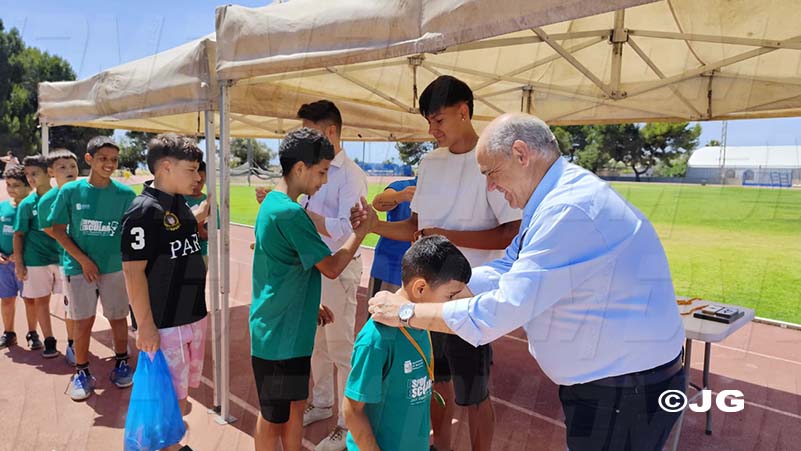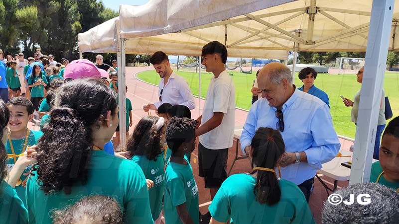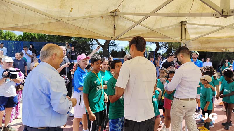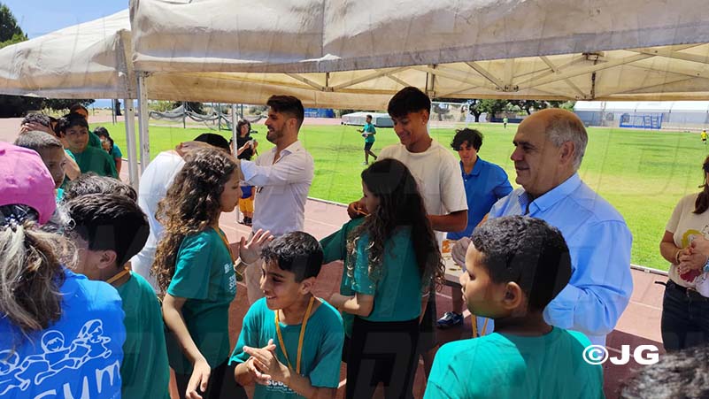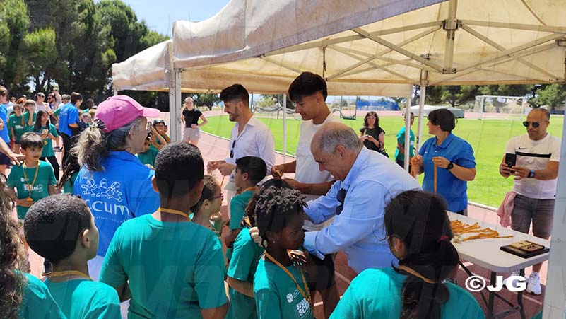 Han acompanyat a l’alcalde de la Ciutat, Juanma Cerdà, el regidor d’Educació, Carlos Delshorts i el futbolista del juvenil del F.C Barcelona, Brian Fariñas, que els ha acompanyat amb la seua presència i seguidament ha signat autògrafs en la samarretes, a totes i tots els alumnes.