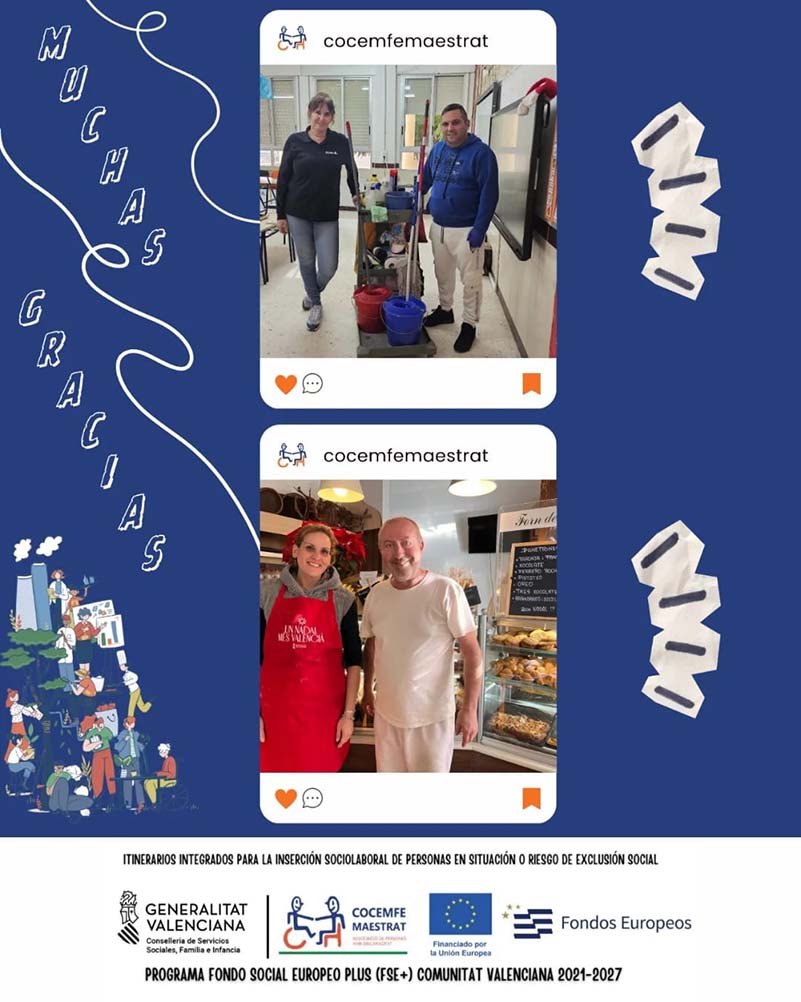 Segons indica COCEMFE, aquestes accions són possibles gràcies al Programa d’Itineraris integrats per la Inserció Sociolaboral de persones en situació o risc d’exclusió social (PIISET 2025), finançat per la Unió Europea a través del Programa Fons Social Europeu Plus (FSE+) Comunitat Valenciana 2021-2027.