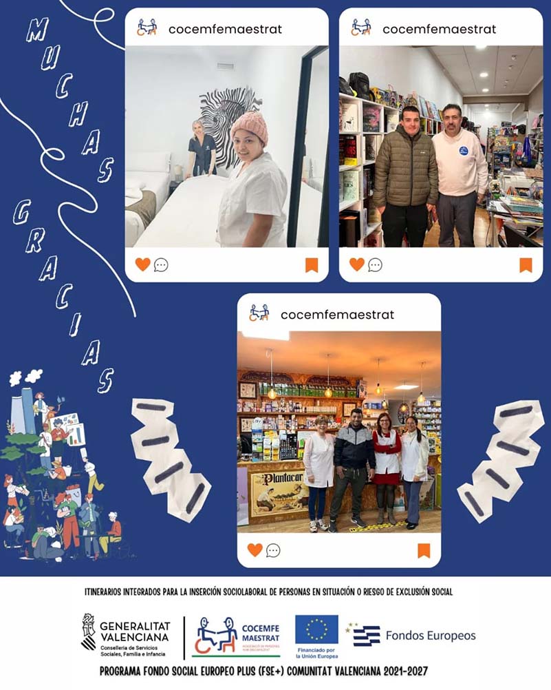 COCEMFE Maestrat, a través dels seus canals de difusió, ha agraït a totes les empreses que han acollit a les persones participants del curs d’Auxiliar de Neteja per la realització de les seves pràctiques, assegurant que “el seu suport i recolzament són fonamentals per afavorir l’adquisició d’experiència real, promoure la seva autonomia i potenciar noves oportunitats laborals”.