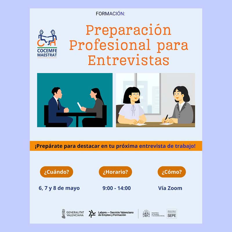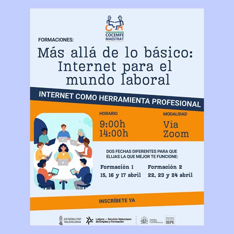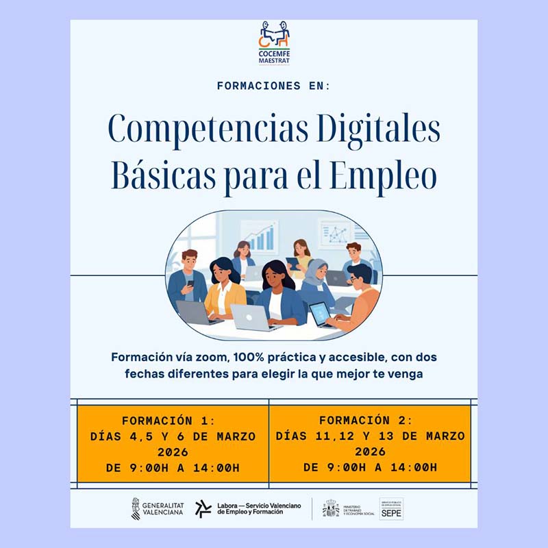 L’entitat COCEMFE Maestrat ha presentat, a través dels seus canals de difusió, noves formacions per a persones amb discapacitat i estas buscant treball o vols millorar la teva manera de presentar-te professionalment.