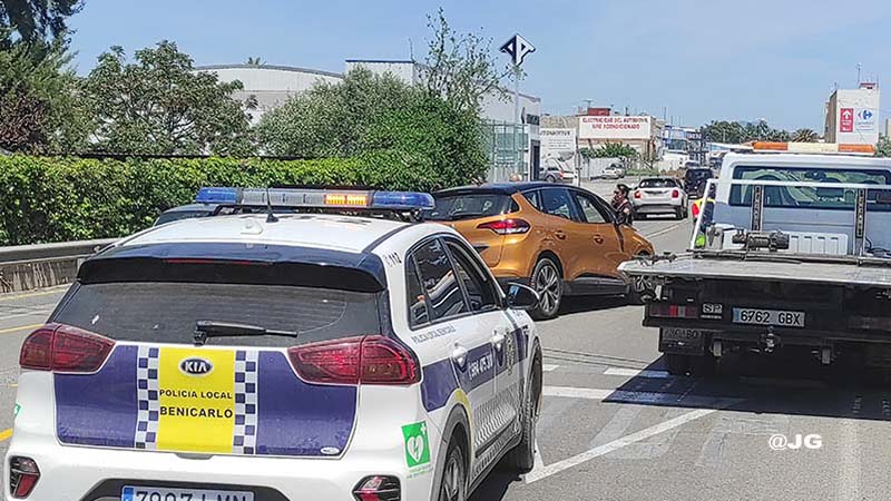- Este martes 10 de mayo alrededor de las 14.00 horas, se ha producido un choque entre un coche y un autobús frente al cuartel de la Guardia Civil de Benicarló