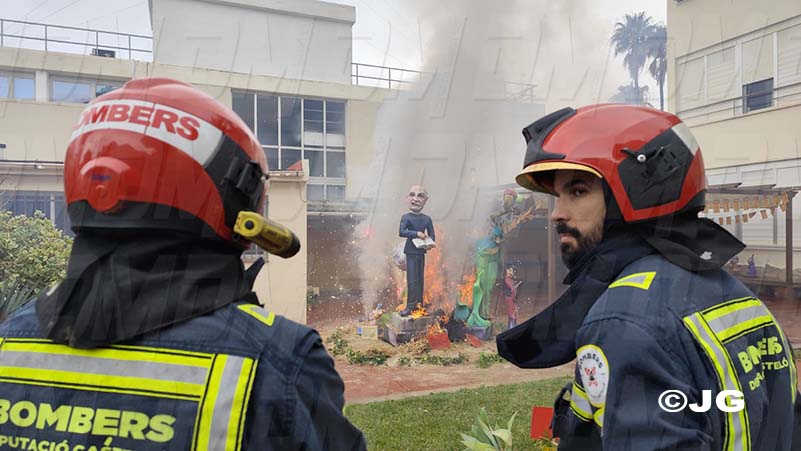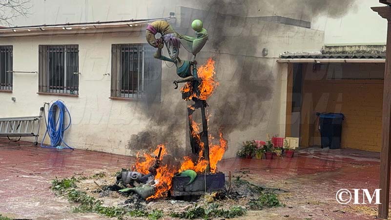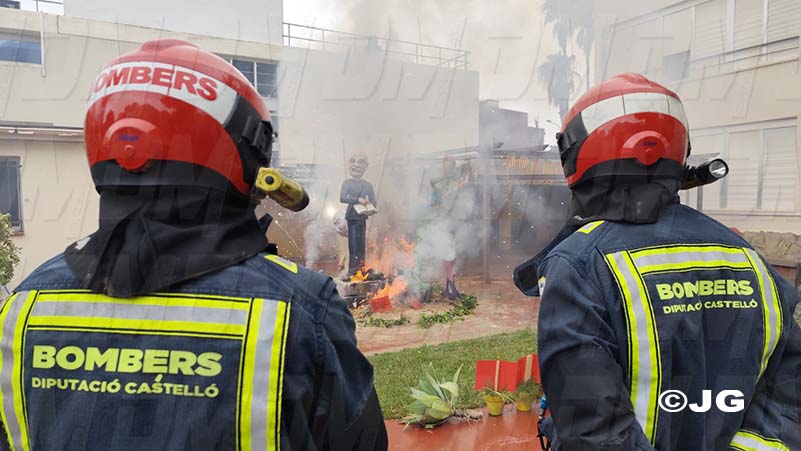 Abril i Marta han encès la metxa per a convertir a cendra la primera falla que es cremava a la ciutat de Benicarló el dia de Sant Josep.