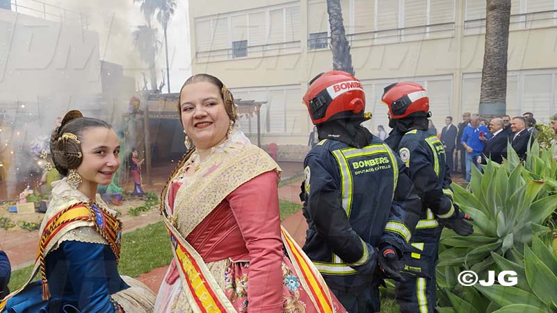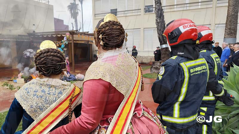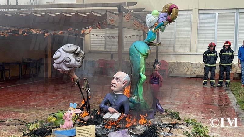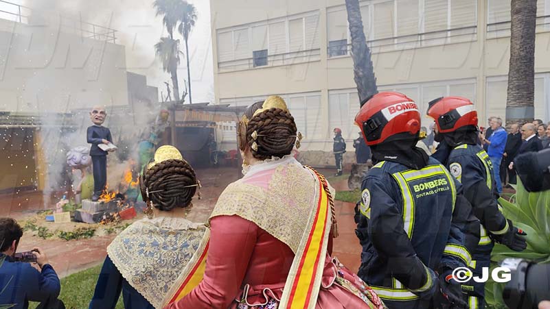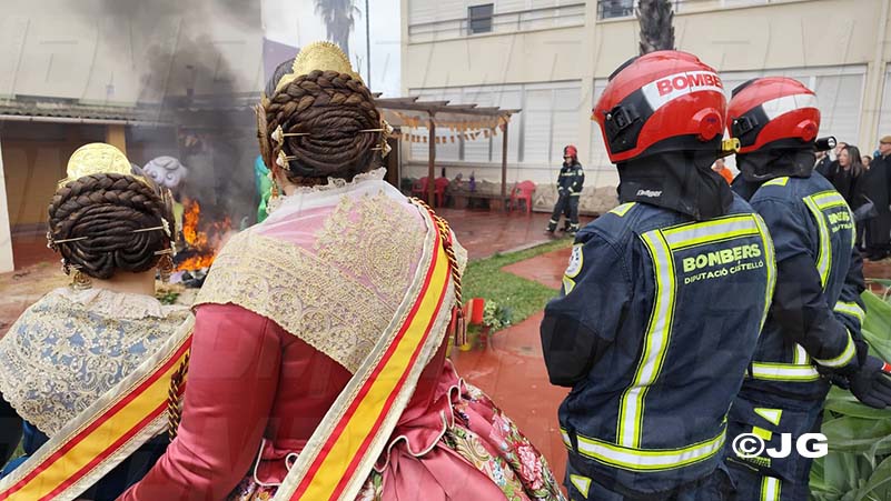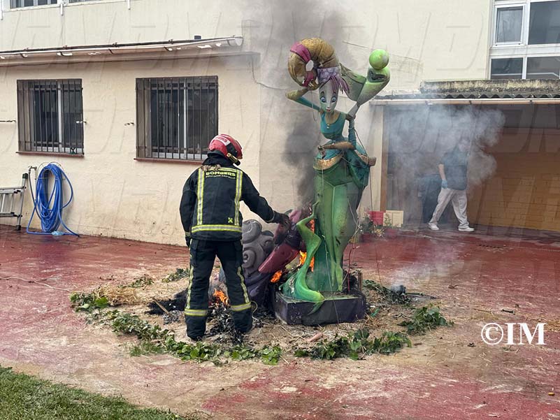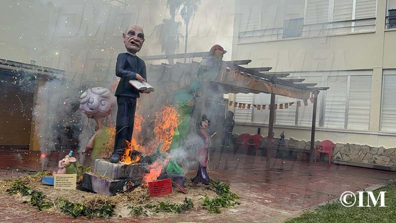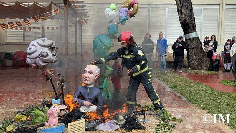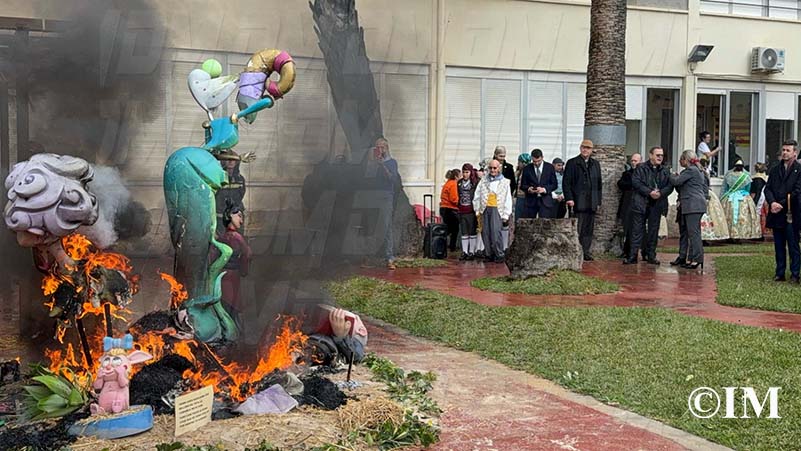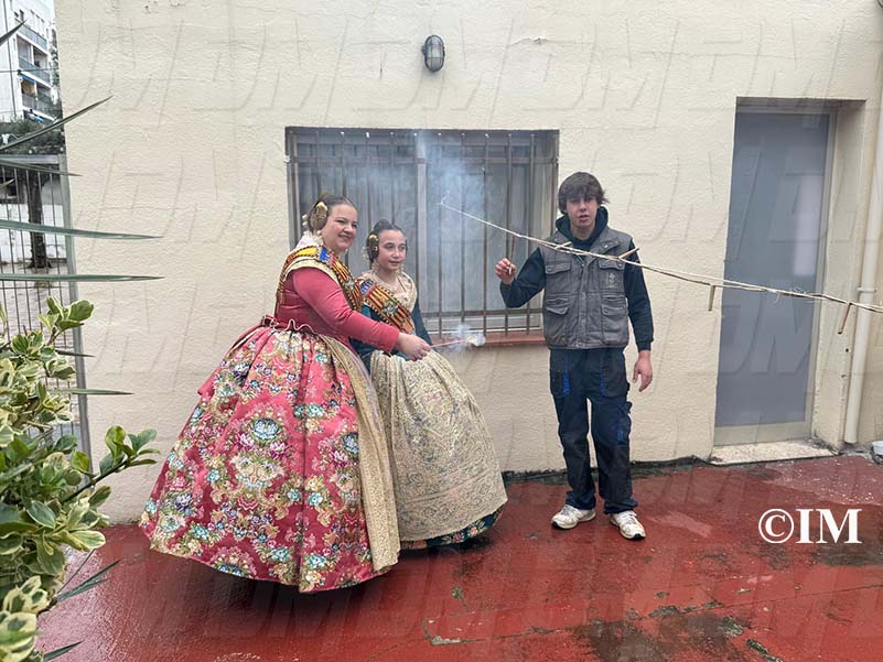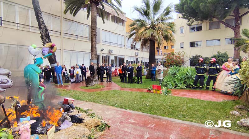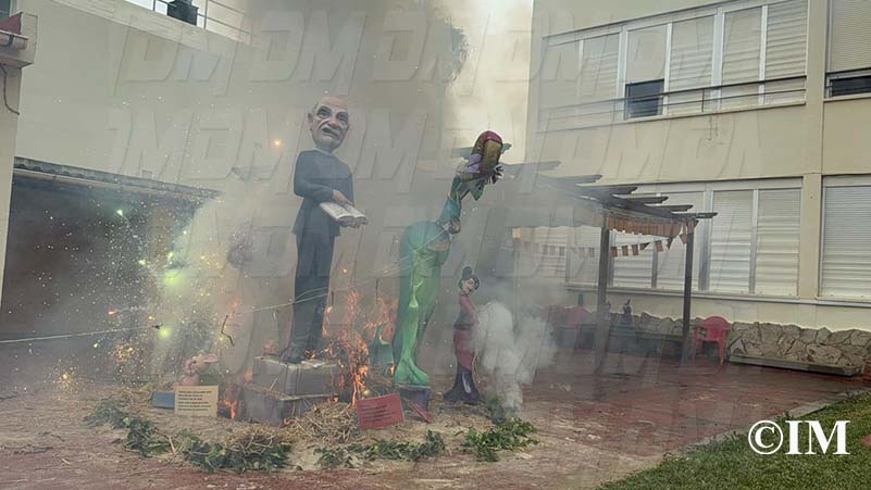 Després de la missa d’honor i abans de l’última mascletà, Abril i Marta juntament amb les seves corts d’honor han assistit al centre Geriàtric Sant Bartomeu, per a convertir en cendra els monuments que les falles van portar fa unes setmanes.