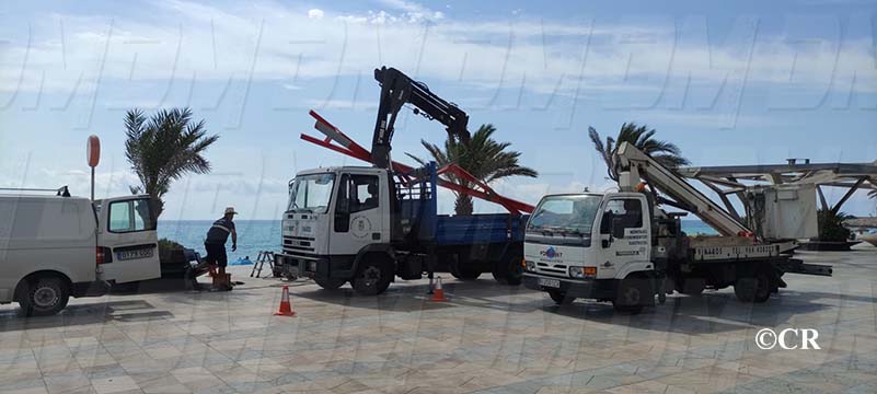 Aquest matí, operaris de la Brigada d’Obres i Serveis han començat els treballs per a poder reparar la farola situada al Passeig Colom.