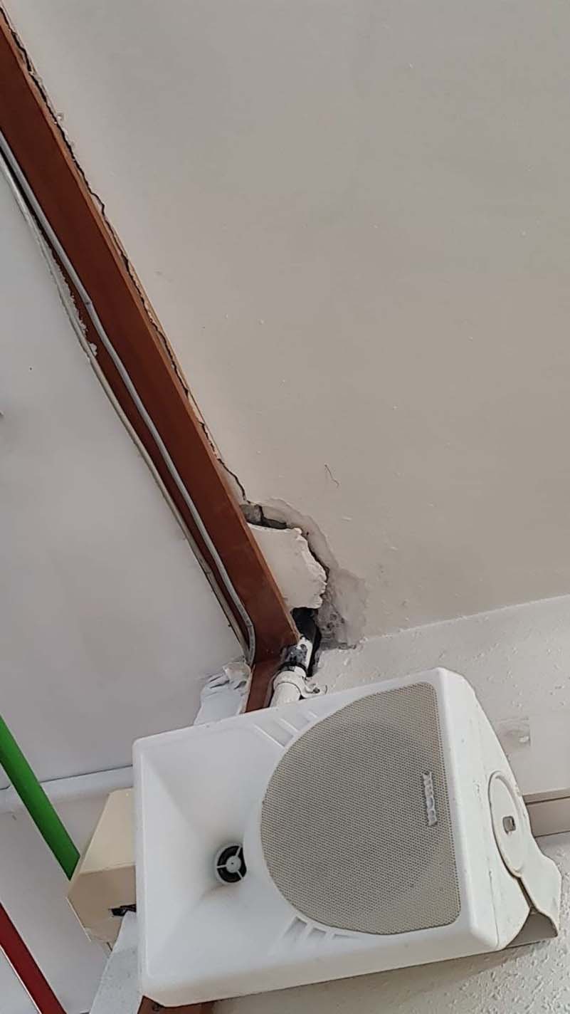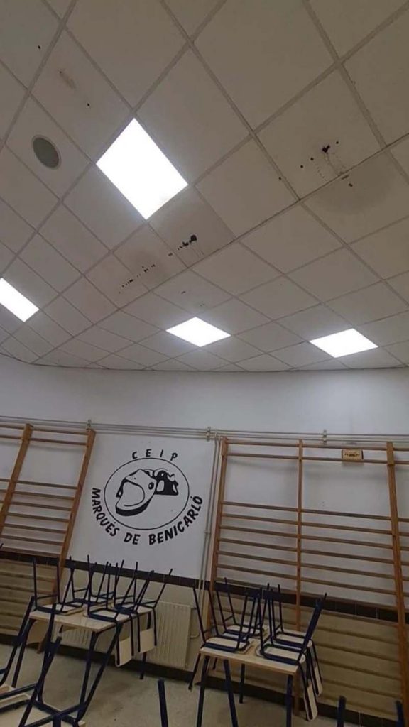 - Por otro lado, y no por ello menos preocupante, hay que denunciar el importante deterioro de las infraestructuras del colegio, con presencia de goteras y filtraciones de agua en algunos espacios del centro, que ponen en riesgo la seguridad de los y las alumnos y alumnas.