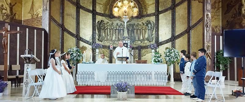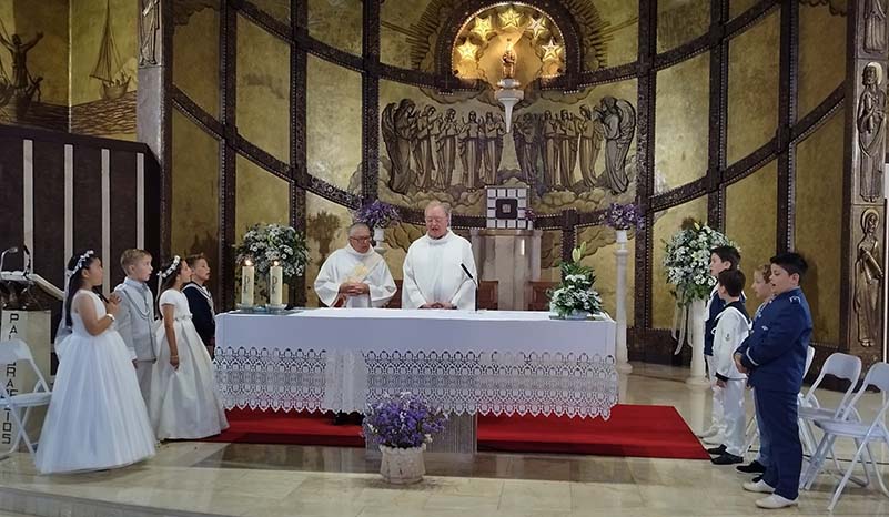 - Domingo 21 de mayo del 2023, seis niños y dos niñas han recibido el Sacramento de la Primera Comunión, en la Parroquia de Santa María