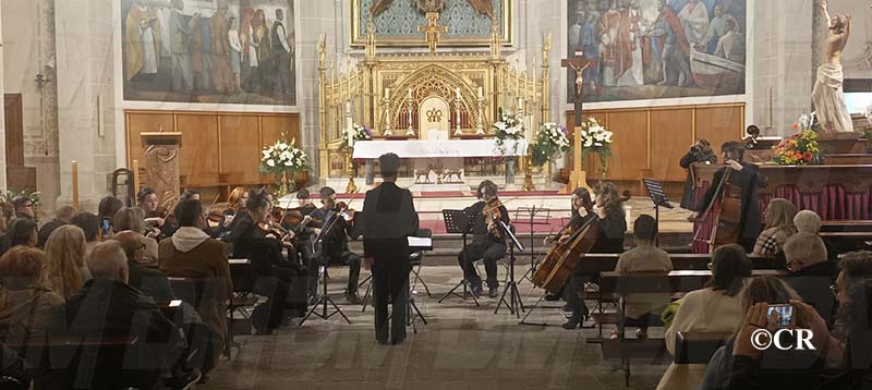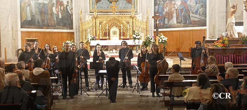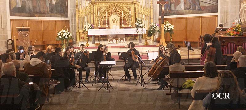 En primer lloc ha actuat la Coral, que ha cantat el “Salm 21” de P. Ireneu Segarra, “Popule Meus” de T.L Victoria, el cant gregorià “Victimae paschali laudes” i el cant “Agnus Dei” de Sherri Porterfield. Seguidament, l’Orquestra ha tocat una selecció de la “Capirol suite” de P.Warlock, per seguir a continuació amb “l’Impromptu for Strings Op.5”, del compositor Jean Sibelius. A continuació han tocat la “Valsa abrasileraida” del compositor brasiler Jonathas Silva, per finalitzar amb el primer moviment de “Acuarelas Valencianas”, del compositor valencià Eduardo López Chavarri.