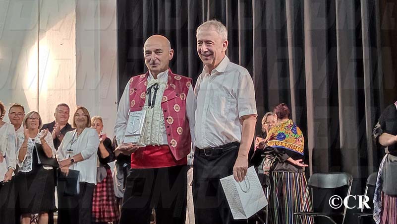 En acabar el concert, el president de la Coral Garcia Julbe va donar un petit detall al president de Les Camaraes.