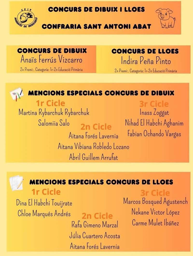 L’alumnat del CEIP Marqués de Benicarló ha estat reconegut en el Concurs de Dibuix i Lloes organitzat per la Confraria de Sant Antoni Abat, demostrant un any més la seua creativitat, sensibilitat i estima per les tradicions locals.