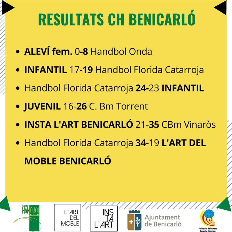 Cap de setmana intens per als equips del Club Handbol Benicarló. L’Aleví Mixte va jugar enfront l’Handbol Onda i va perdre per 0 a 8. El Juvenil va debutar a la Copa Federació enfront del Club Balonmano Torrent i va perdre per 16 a 26.