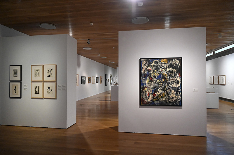 L’exposició, que es pot visitar fins al 4 de setembre, està dividida en tres espais contigus: ‘Verdor en la nostra terra àrida’ està dedicat a l’art produït durant el primer franquisme dins de les fronteres del territori nacional. La segona sala, ‘Desterraments’, reuneix treballs realitzats per artistes expatriats, en situació d’exili, emigració o fugida. Finalment, ‘Com qui espera l’alba’ mostra l’art produït a Europa i els EUA després de la traumàtica experiència de la guerra.
