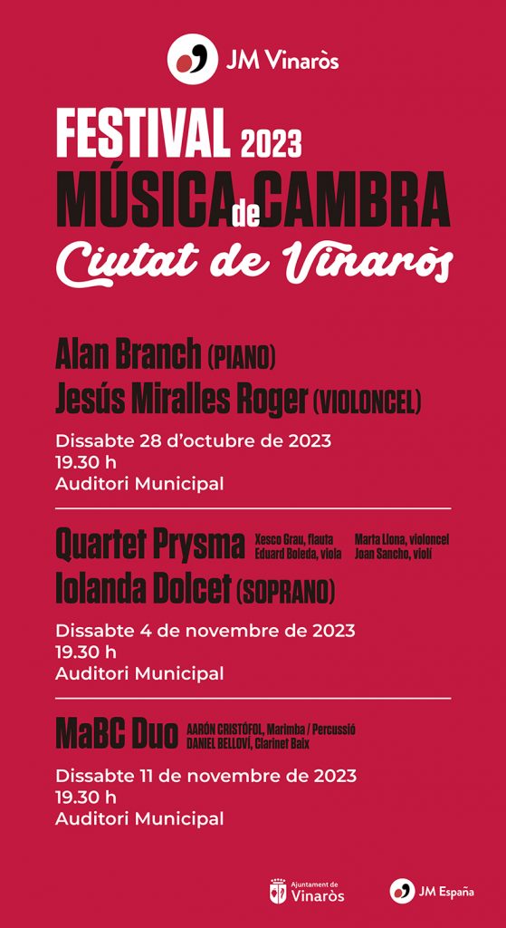 Pel que fa a la programació vicepresidenta de les Joventuts Musicals de Vinaròs, Victòria Ribera, detallava els tres grups que actuaran a l’auditori municipal. El primer concert serà aquest dissabte, 28 d’octubre, a càrrec del duet format pel pianista Alan Branch i el violoncel·lista vinarossenc Jesús Miralles, una actuació que de ben segur encisarà al públic. El segon concert serà per al 4 de novembre per part del Quartet Prysma amb la veu de la soprano Iolanda Dolcet, que oferirà un variat repertori d’òpera.