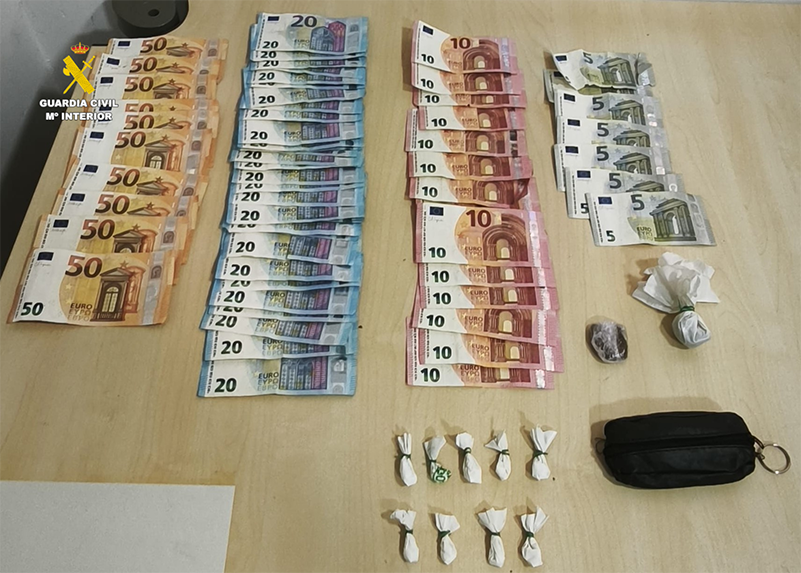 Se han incautado 6 gramos de cocaína, 7 gramos de hachís, 4 gramos de marihuana y 1375 euros