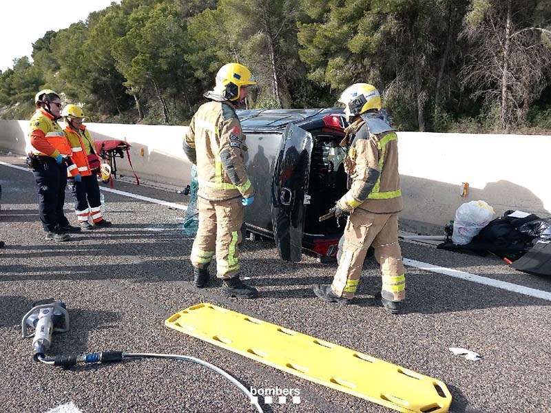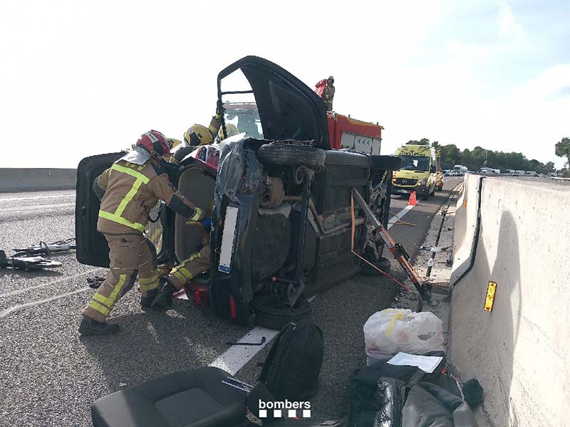 Segons han informat, un vehicle ha col·lidit contra la mitjana de l’autopista i ha acabat bolcat, deixant dues persones atrapades a l’interior. Fins al lloc dels fets s’han desplaçat quatre dotacions dels Bombers, que han procedit a estabilitzar el vehicle i realitzar les maniobres d’excarceració per alliberar els ocupants.